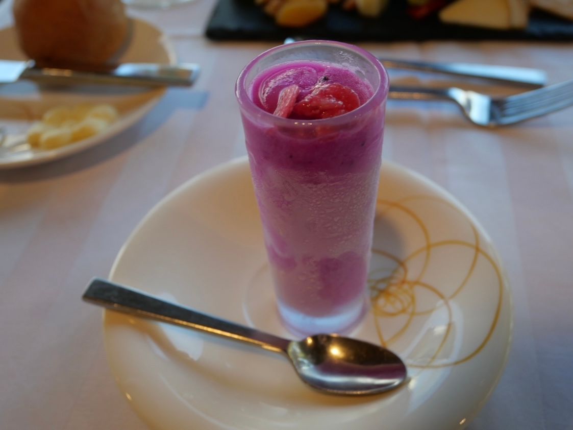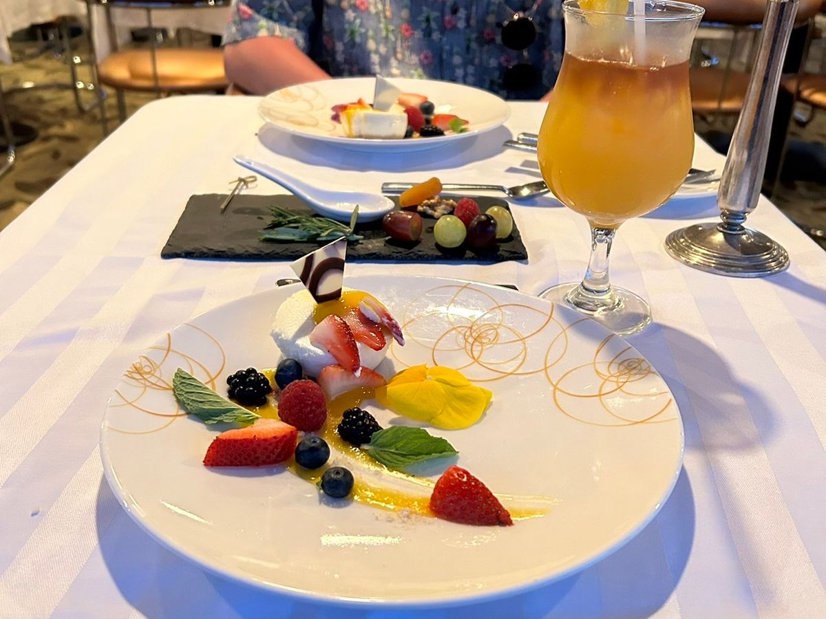 下船が19時45分と記載されており、18時45分頃にボトルワインを頼みましたが、何度バトラーにフォローしてもバーが混み合っていると言ってワインは来ず、デザートまで配膳が済んだ19時20分にやっと届きました。