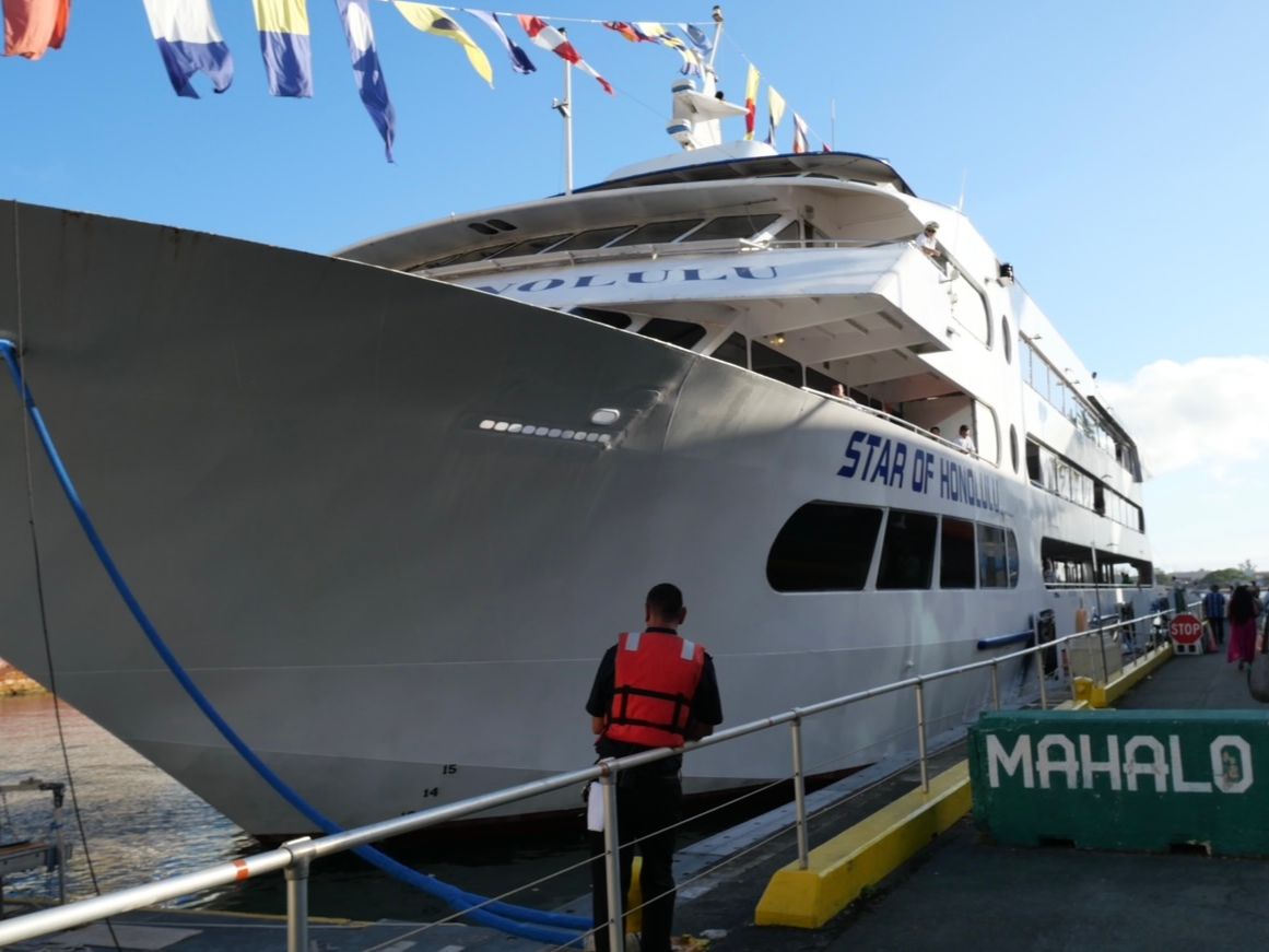 約2時間の船旅はあっという間でした。5月の初めでしたが、出発する時はまだ日が残っており、寄港時には真っ暗でした。寄港した後は、改めてバスに乗りワイキキまで送迎してもらいました。