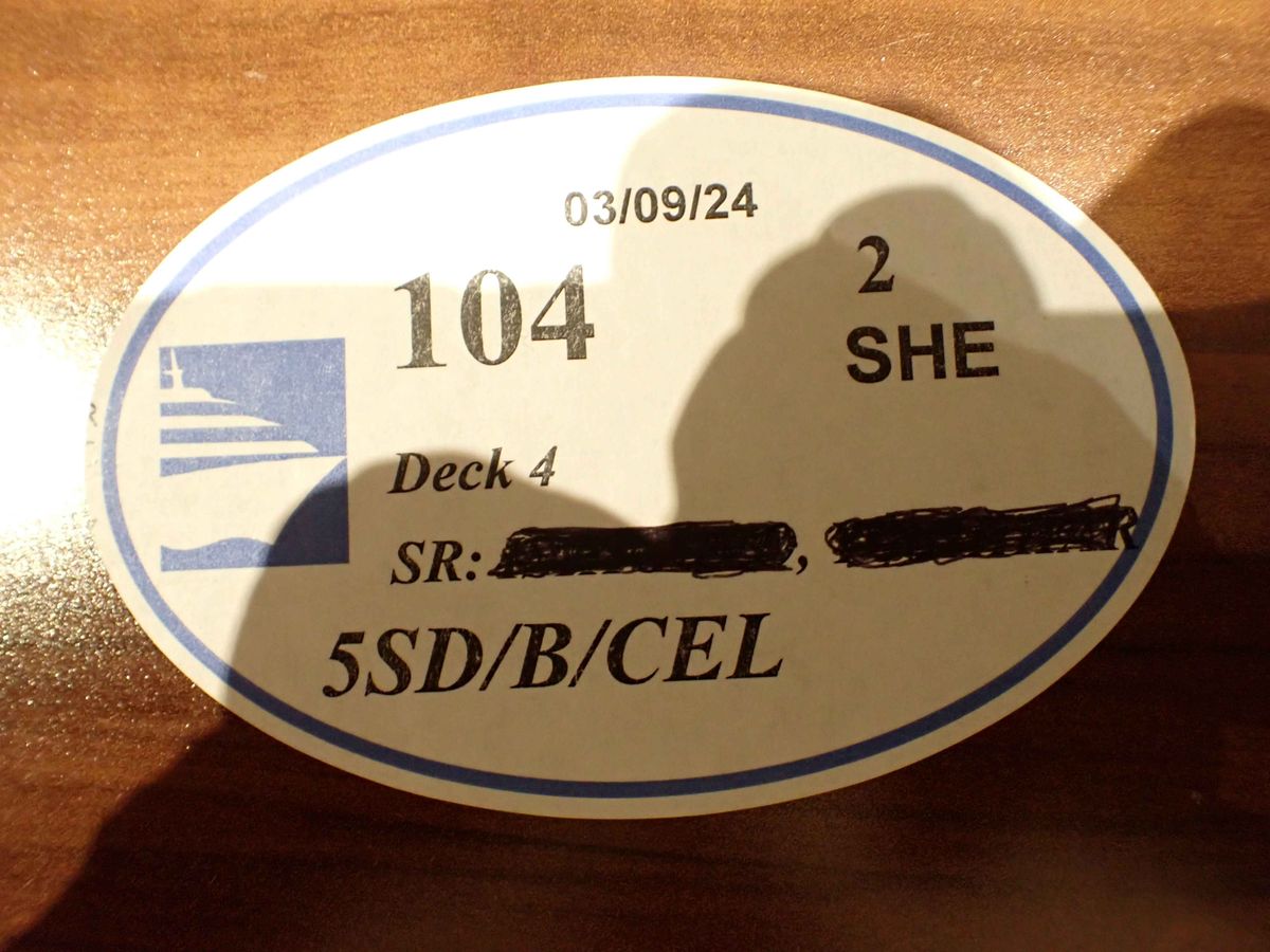 ピックアップの際、参加者は胸などに貼るシールと一人2杯のドリンク券を渡されます。シールには、船のフロアの階数とテーブルナンバーなどが記されています。