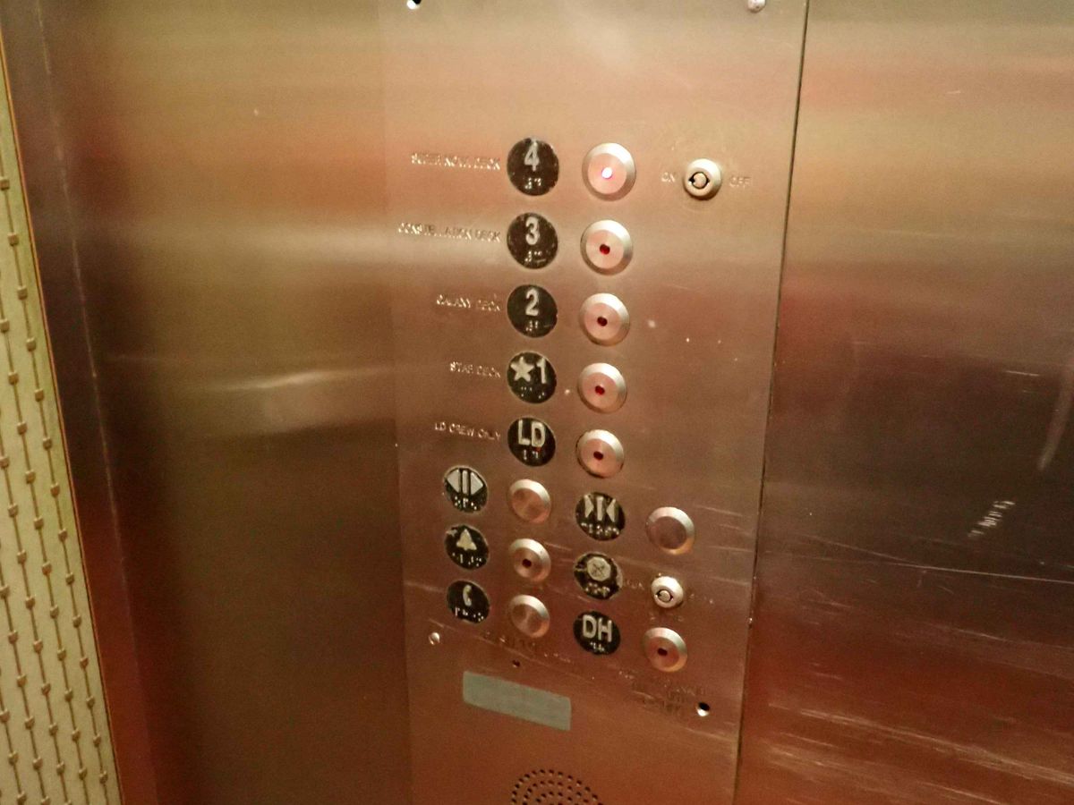 ピックアップ場所は宿泊先がホクラニだったが2人で合計4$払ってシェラトンに変更してもらった。ピックアップ場所で係より参加のプランを示すシールを渡された。(写真1)迎えに来たドライバーは日本語が話せる唯一の人で、いろいろ説明してくれた。桟橋に着くといつもは男女の踊りでお迎えだったが、この日は天気のせいか踊っていなかった、傘をさしてのお出迎えだった。係の案内で4階までエレベーター(写真2)で移動することになっていた。係の案内でテーブル席に案内され、準備してあったボトルのシャンパンを注いでくれた。(シャンパンは頼んでいないはずだったが、コースについていたらしい?)ボトル1本飲むのは無理と思いながら2杯目ついだところで、ボトルが回収された。やはり間違いだったらしい、シャンパン2杯でよっぱらってきた)。