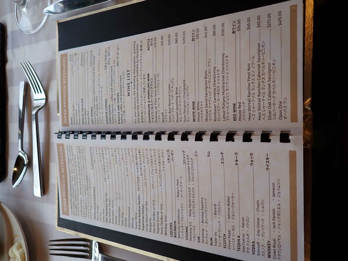 寄港前5スターはジャズと歌で盛り上がる。3スターは寄港前から大騒ぎになり全てのお客が巻き込まれてしまう。5コースは、落ち着いて座ったままで、ジャズを聞いていればいいので私は個人的には落ち着いた大人の雰囲気の5コースが気に入った。おしぼりはくれるけど3コースは丸ごとロブスター1匹を手と道具で割って食べるので、手に匂いがつくし汚れる。5コースのロブスターは半身に割ってあるのでナイフとフオークで楽々食べることが出来た。