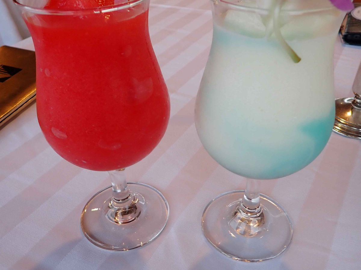 ドリンクは2杯付、ドリンクの写真右ブルーハワイと左ストロベリーダイリキ(写真8)、右レモンライムと左ラバフロー(写真9)