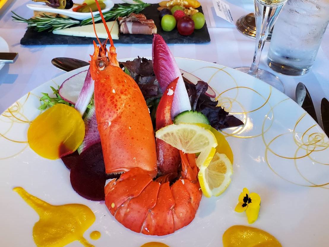 メインはロブスターとステーキで、私はちょっと甲殻類アレルギーなので念の為ロブスターをお魚に変えてもらったけどサーモンのソテーとても美味しかったです。お野菜もたくさんのってました。