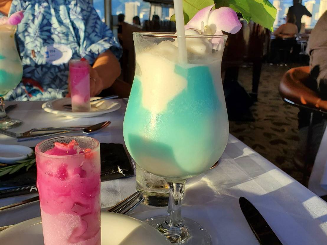 食事の最中もフロアで歌や踊りがあり、気分は上々。上のデッキからはホノルルの夜景が見えて、ビーチから見る風景とは、また違った感動があって思い出に残ると思います。