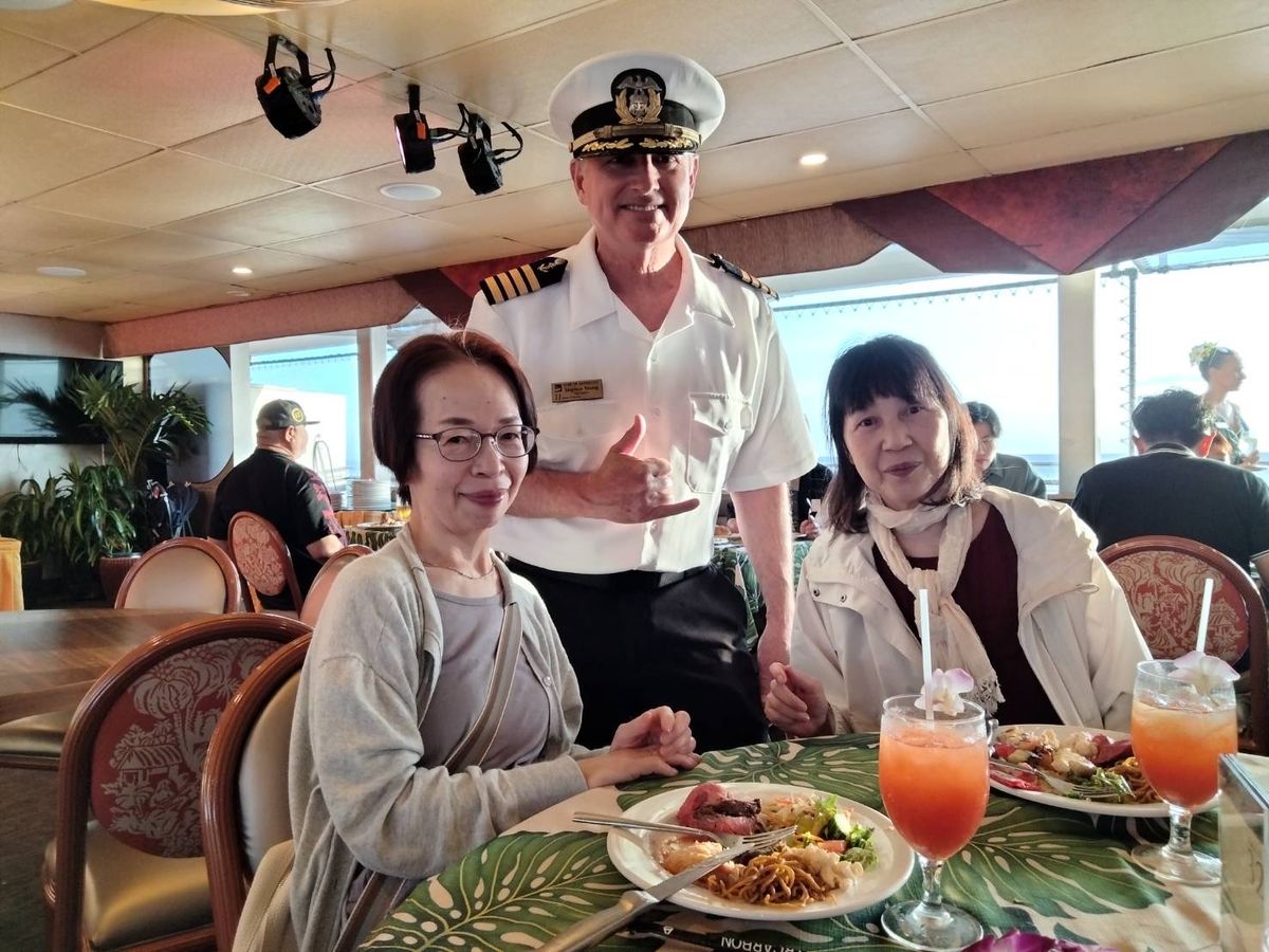 キャプテンの挨拶でみんなで乾杯したあと、キャプテンが各テーブルを回って挨拶してくれます。記念撮影にも快くこたえてくれてました。