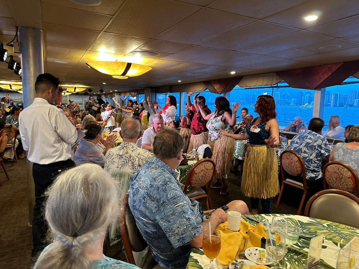 船上の雰囲気やサンセットが、とても素敵でした。ツアー終盤どは、ハワイアンダンスが本格的になり全員手拍子で盛り上がりました。