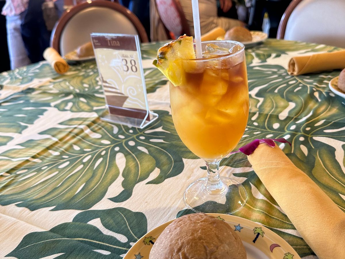 各テーブルにツアーの大まかな流れ、飲み物等を英語と日本語で書いた物が置いてあった。(写真5,6)アルコール抜きはバージンと頼べばよかった。アルコール抜きにはプリメリアの花が添えてあった。