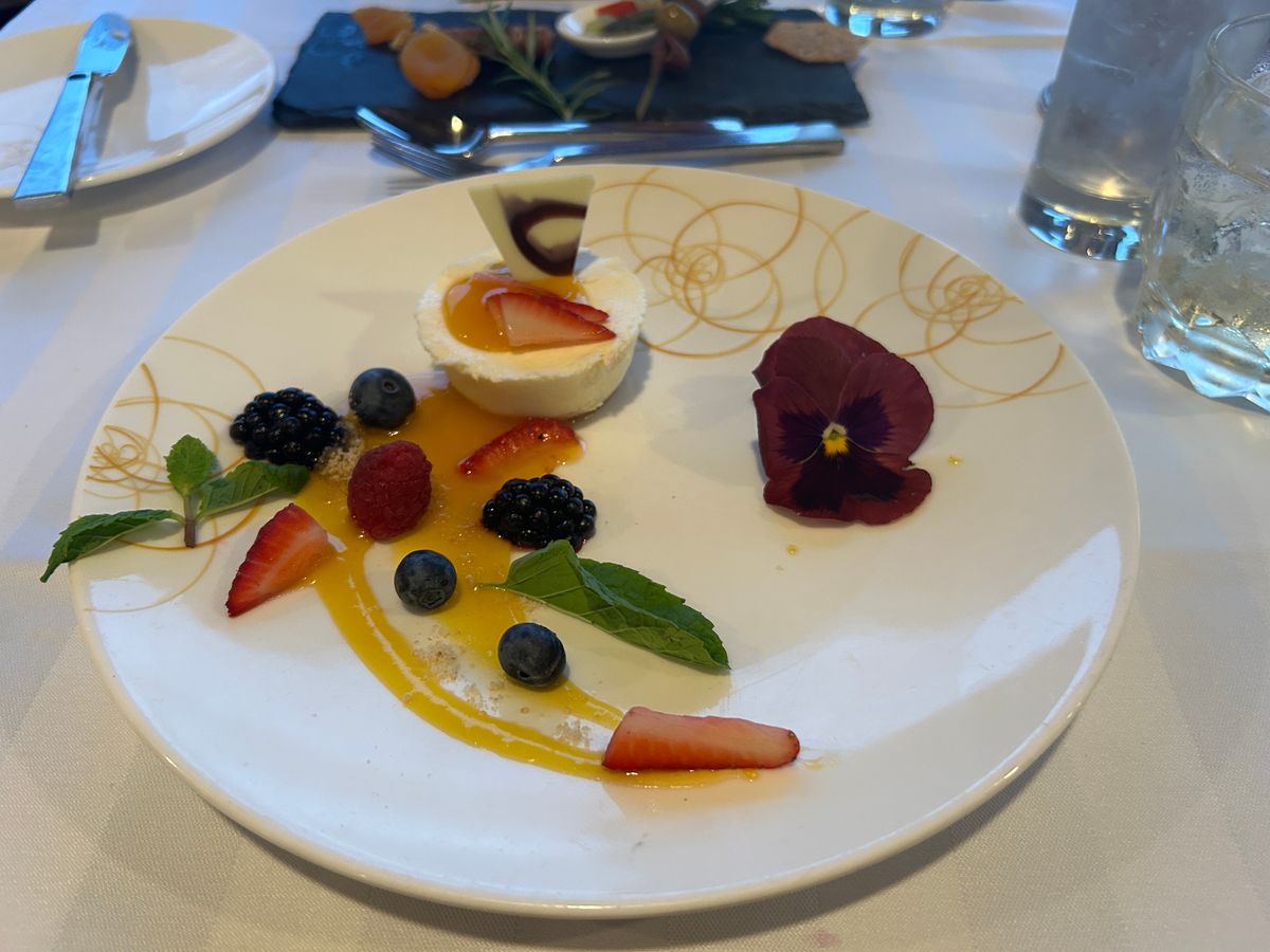 デザートのチーズケーキ美味しくベリーたくさん乗ってた!