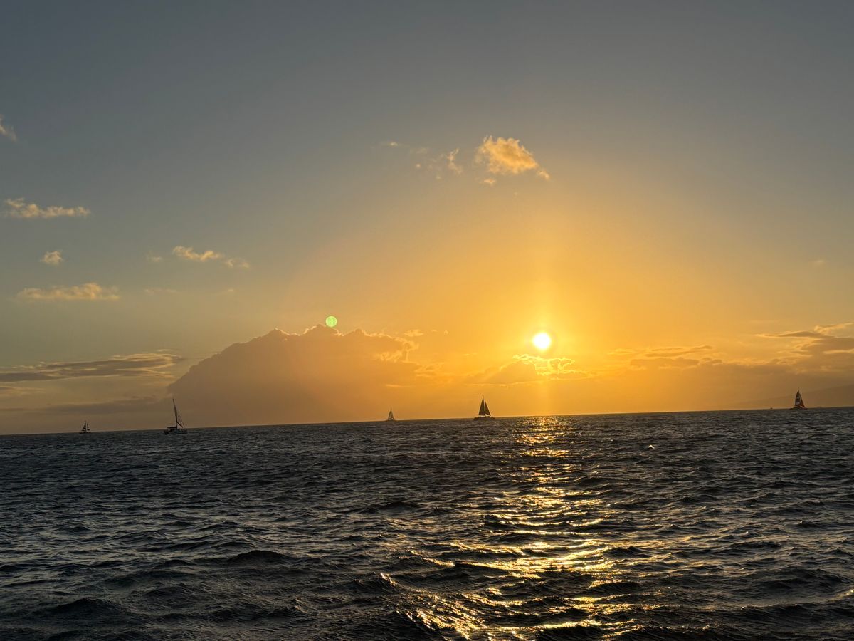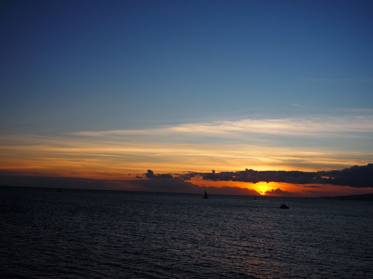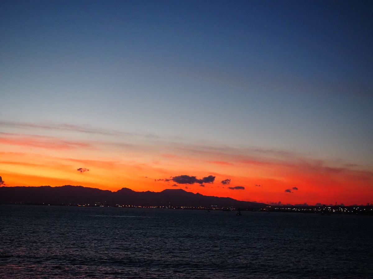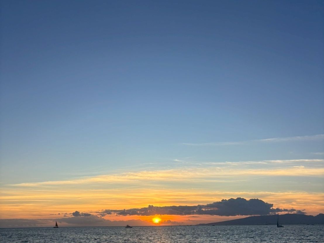 少し雲がかかっていましたが、ハワイの綺麗なサンセット、海から見るダイヤモンドヘッドの美しさ、最高でした。