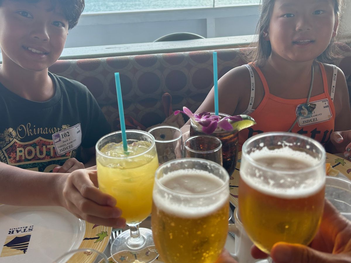 この度は私共のスターオブホノルル号にご家族でお越し頂き誠に有難うございました。スリースターでのお食事とクルーのサービスも満足して頂き大変嬉しく思っております。又ハワイでお待ちしております。