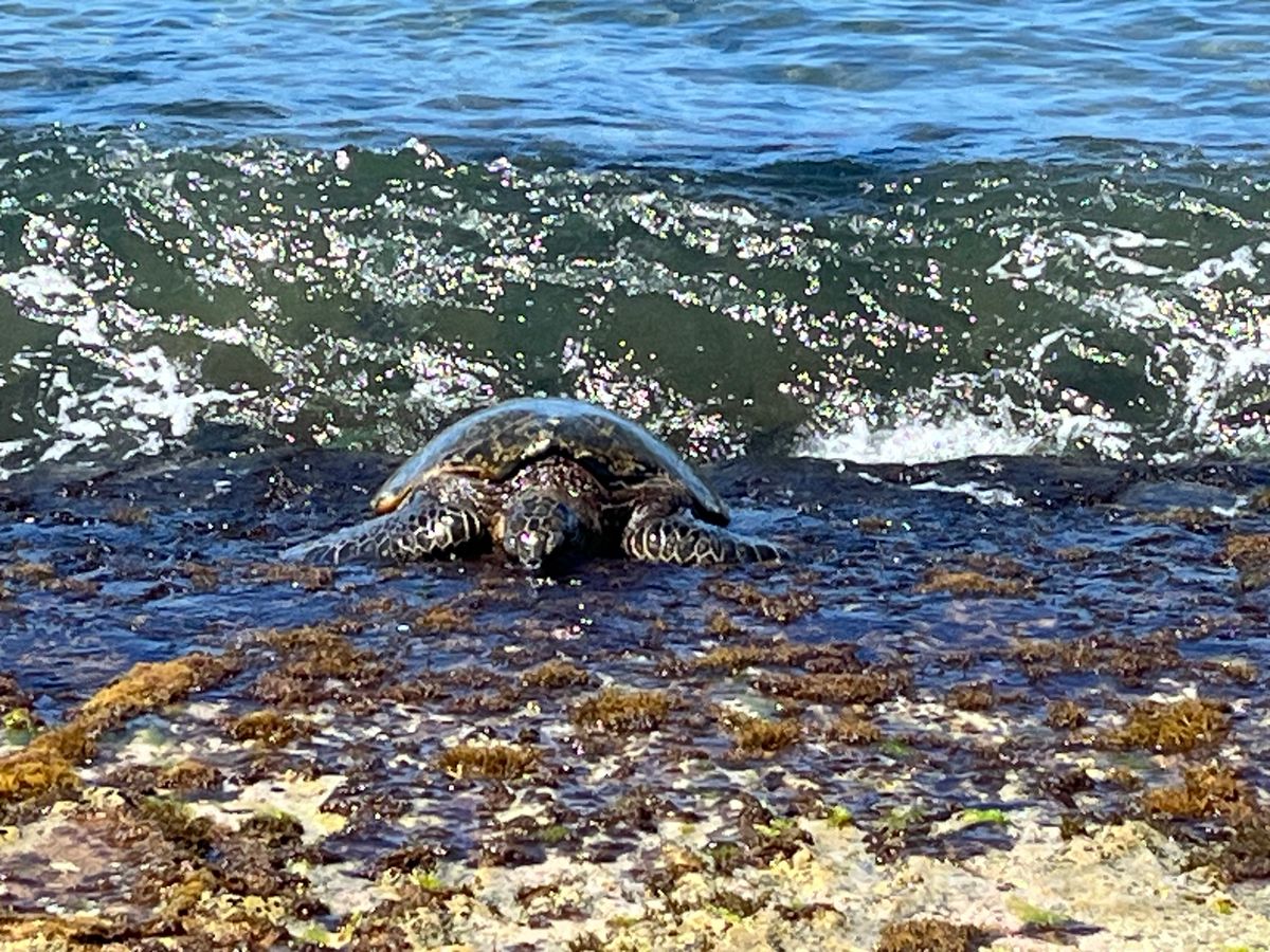 ホヌは波打ち際で5〜6頭遭遇した。じっとしているホヌ、波に任せてぷかぷか浮いているホヌ等、こんなに遭遇できるものなのかと感動した。