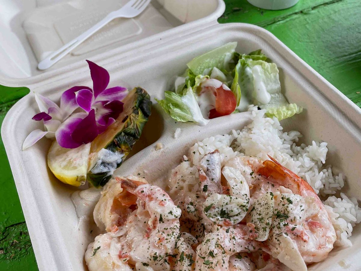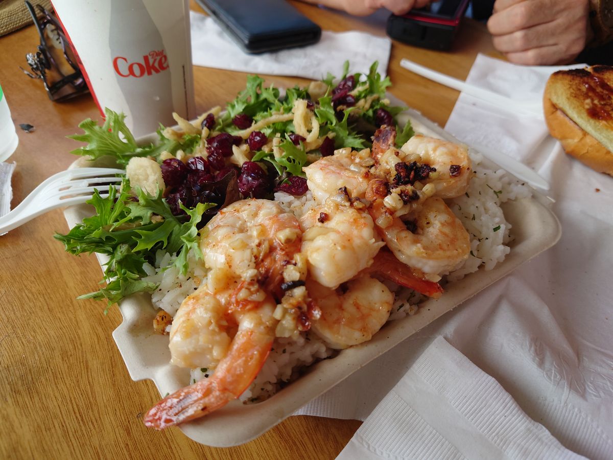 空港からノースショアへ!私が行ってみたかったカフク発のセブンブラザーズがハレイワにも出店したとのことでお昼はそこで名物のバーガーやガーリックシュリンプを堪能(どちらもおいしい!ポテトも他にはない感じで最高)。