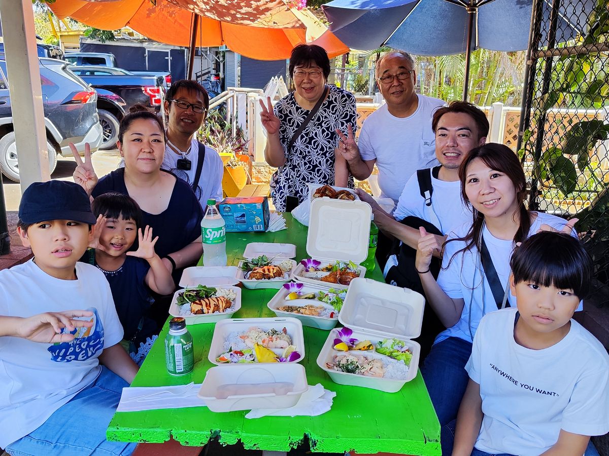 夫婦2人以外は初ハワイ、義母と子供達も初めての連続でしたが、要所要所のハワイ小噺、歴史や豆知識等で飽きさせず、プロの仕事でした。
