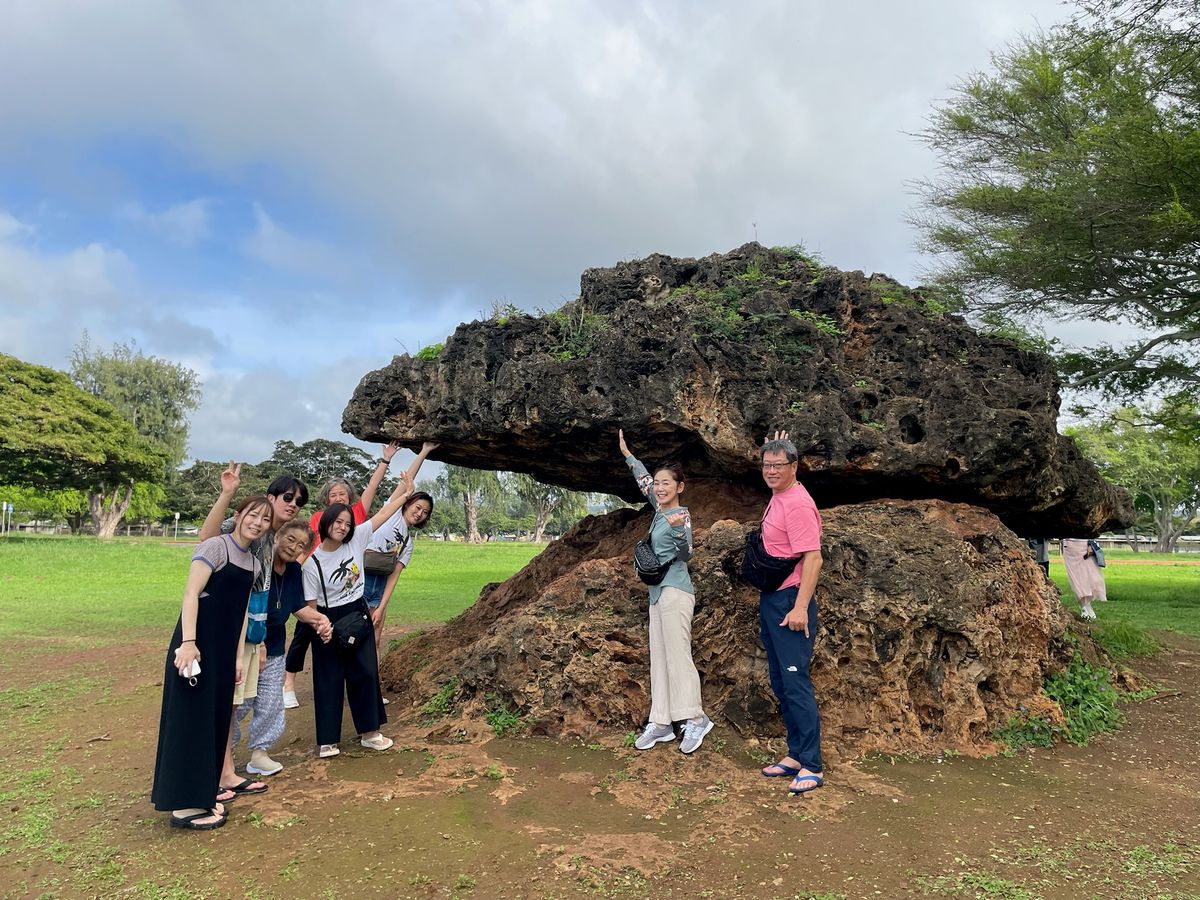 カメハメハ大王から真珠湾、ノースショア、ガーリックシュリンプ、アロハシャツ、お手頃なお土産の大量購入まで、ハワイの歴史や国内事情の知識を踏まえつつ「見る、聞く(知る)、食べる、買う」を満たしてくれました!