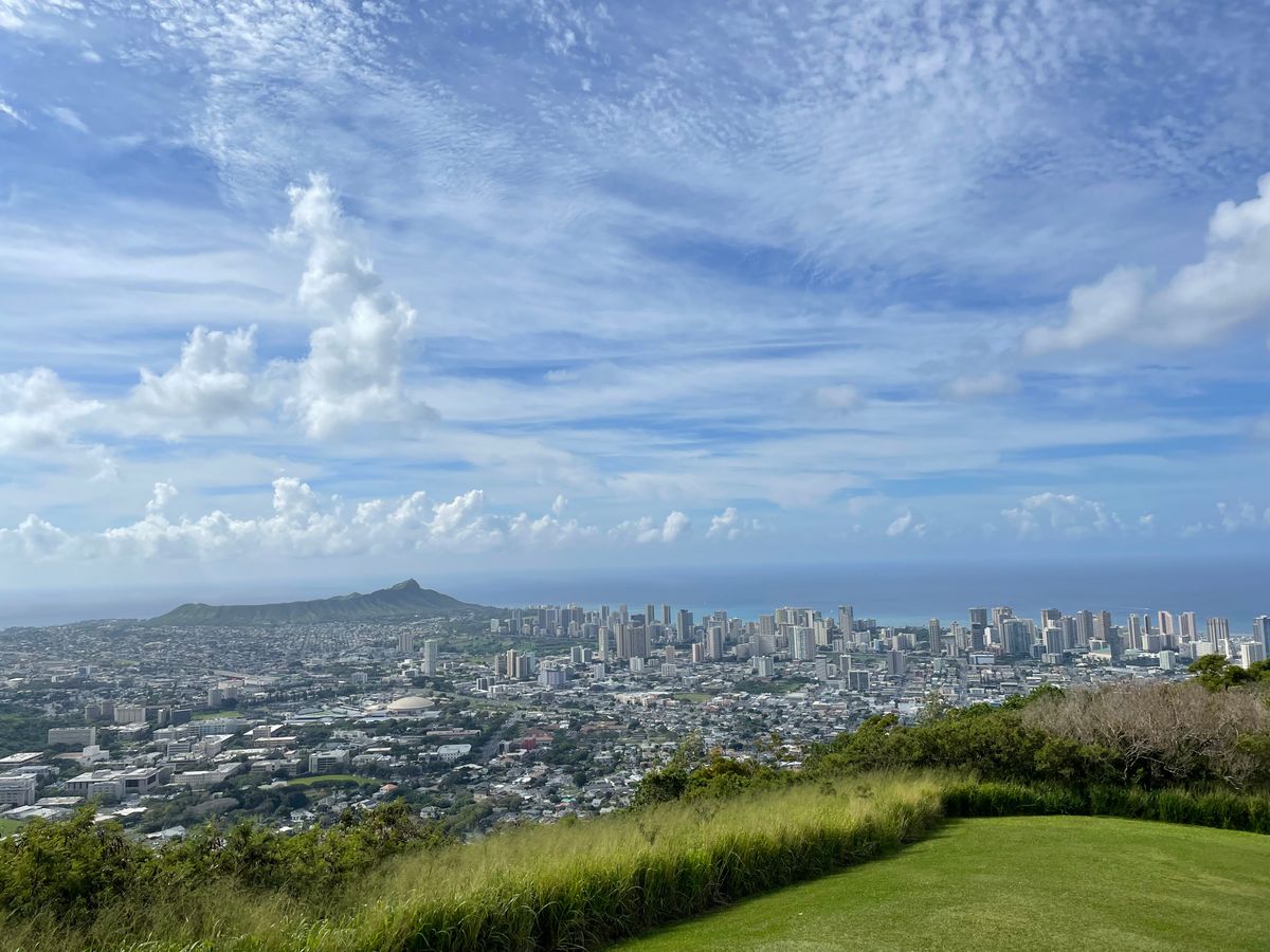 始め、タンタラスに連れて行って頂き、昼間のワイキキの景色を堪能し、観光バスでは入れない山頂の公園に連れて行って頂きました。