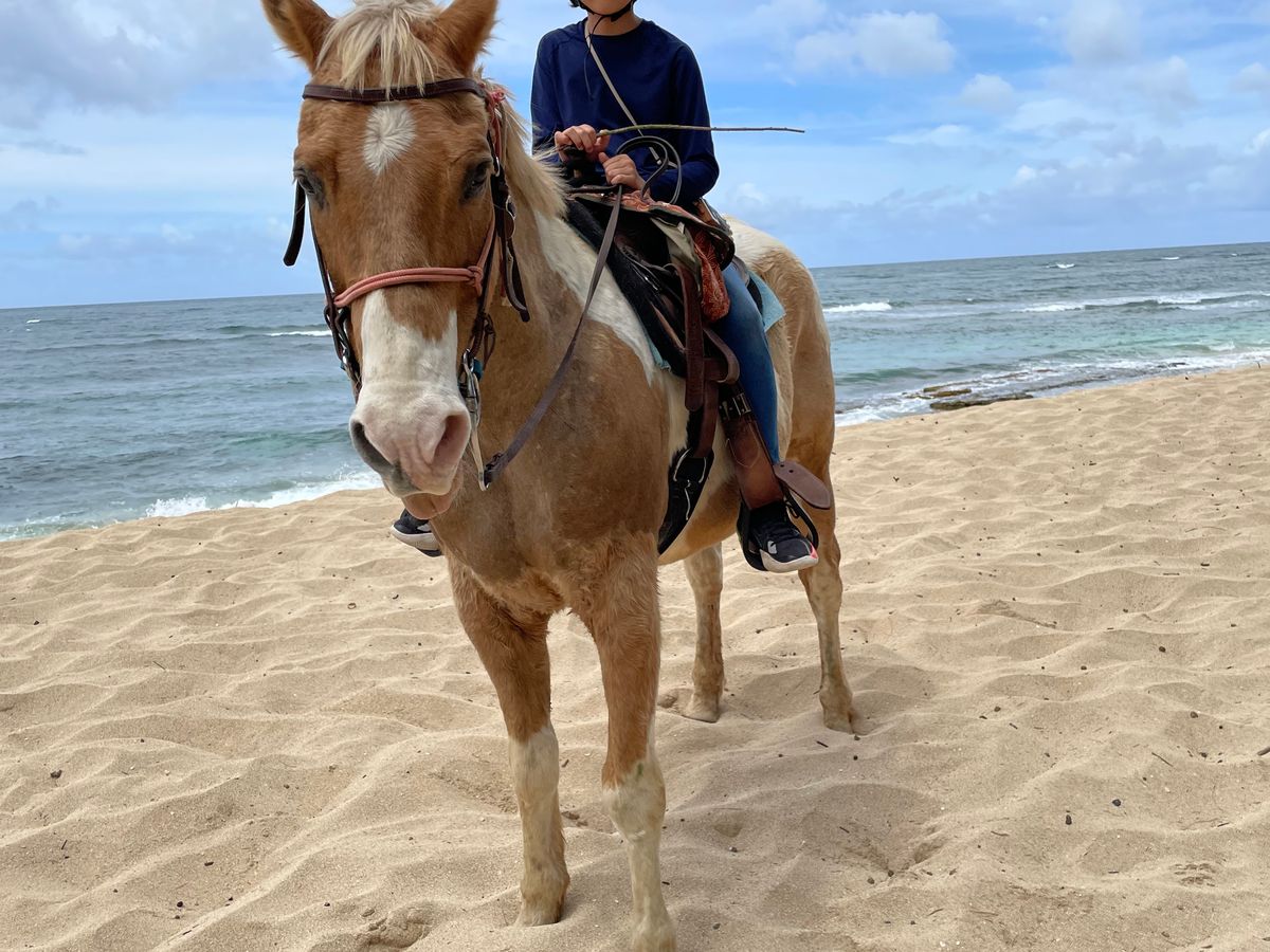 ノースショアで海岸散策、亀ウォッチング、名物ランチ、超美味しいマカダミアナッツとコーヒー直売所、パタゴニア、スヌーピー、マツモト、乗馬、帰路途中にカカアコ、パタゴニア、レナーズと行きたい場所に全部寄ってくれました!写真も沢山撮ってくれます!