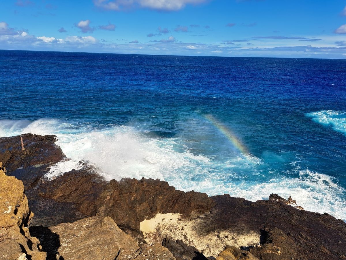 先ずはフリフリチキンとガーリックシュリンプの美味しいランチを堪能し、ホールフーズマーケットでちょっぴりお買い物、その後マカイリサーチピアの桟橋の下・マカプウ岬・潮吹き穴&エタニティビーチを巡り、青い海と空の美しさと絶景にその都度感動!!