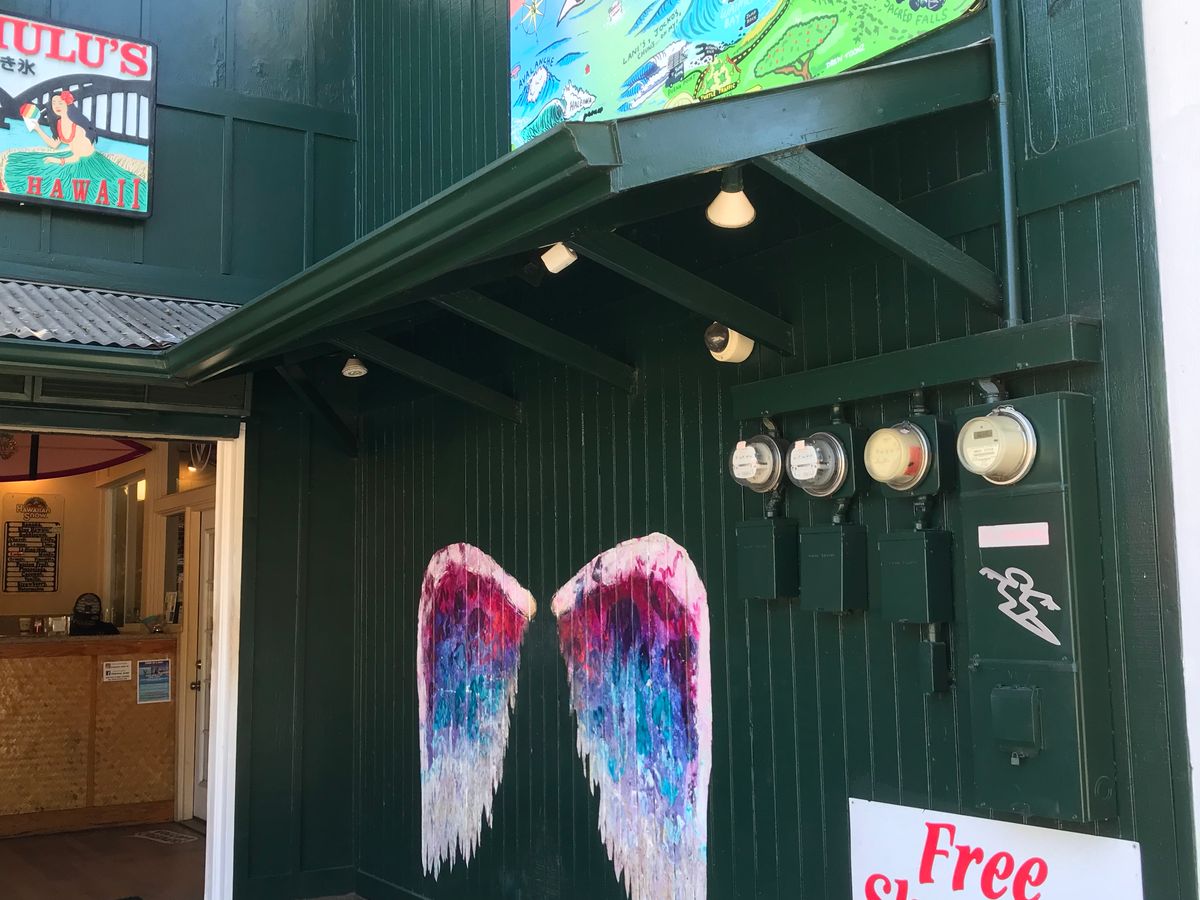 ハレイワタウンでお勧めのガーリックシュリンプのお店に連れていってもらいました!美味しかったです。インスタ映えしそうな壁画スポットにも、案内してもらい、皆で写真も撮りました。(インスタはやっていませんが、、、)