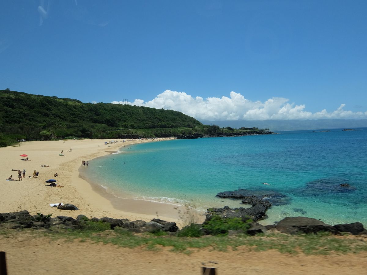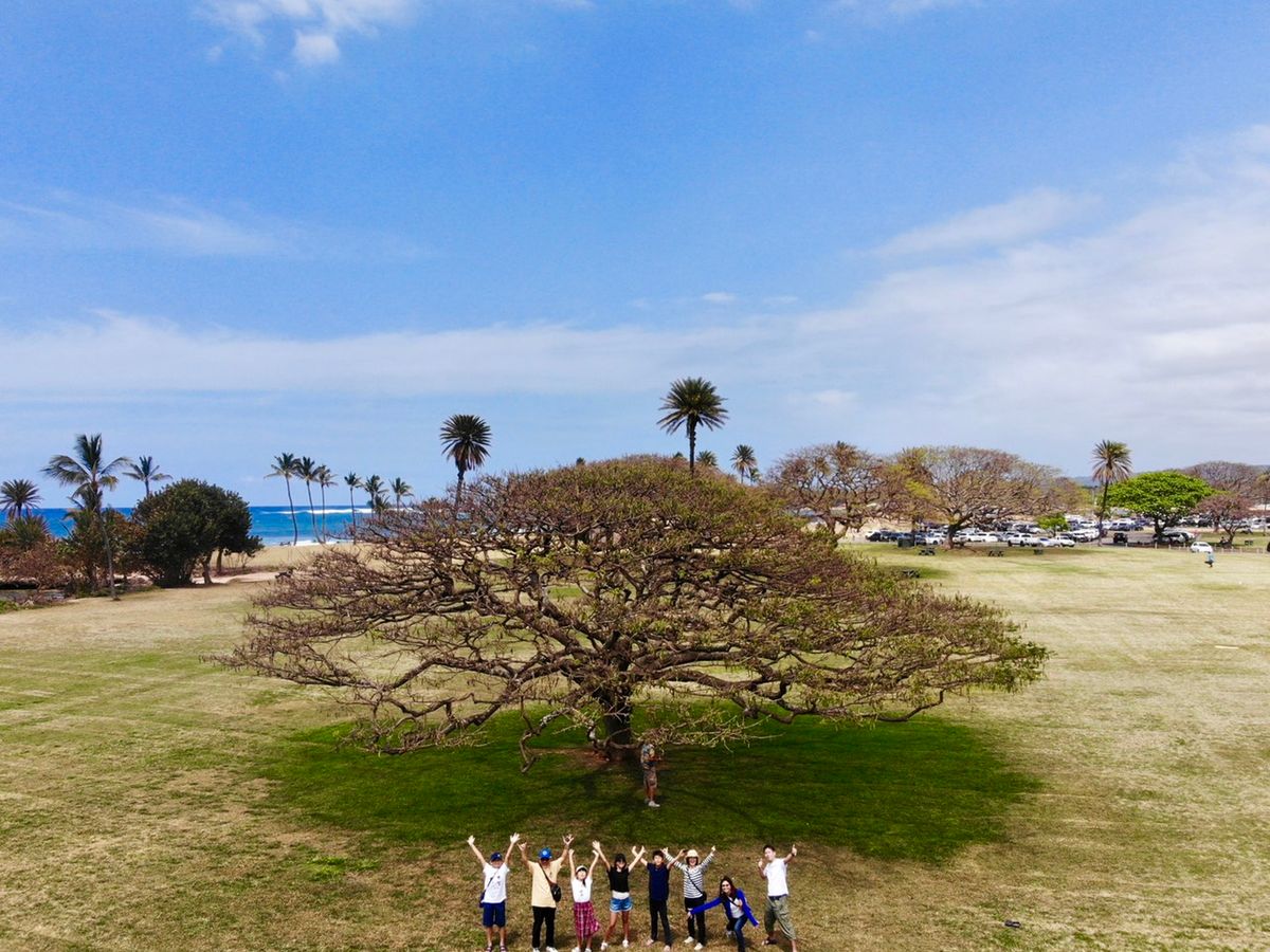 実際には、この木なんの木を車内から見て、チャイナマンズハットを下車して見た後にガンストック牧場に行ってもらい、牧場では通訳までしていただいて(笑)テッズベーカリー本店のチョコレートハウピアパイをきれいな海を見ながら食べて(ゴザまで用意してくれて)ハレイワの有名な看板を実際に見てからウミガメと会える海に!陸には上がってなかったものの、波打ち際まで来たウミガメを至近距離で見れました。