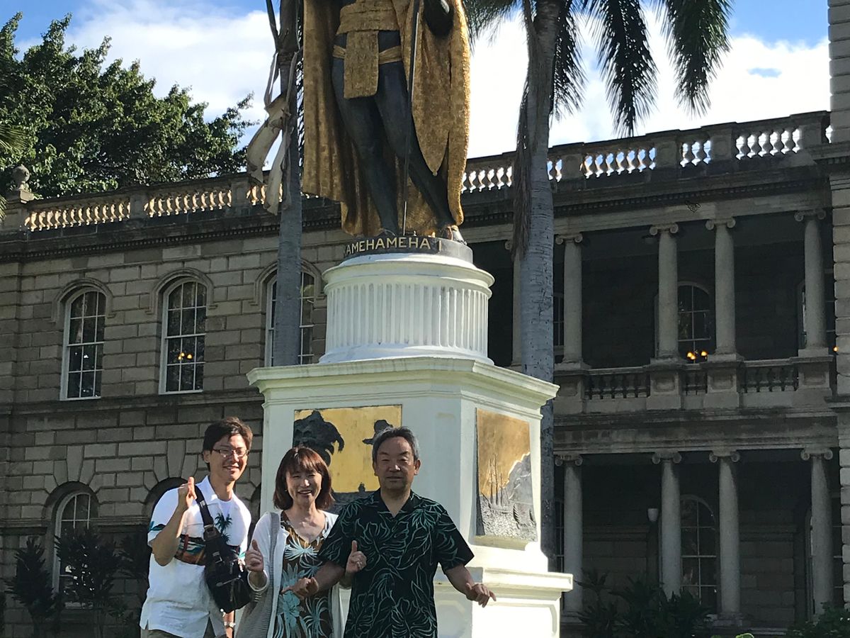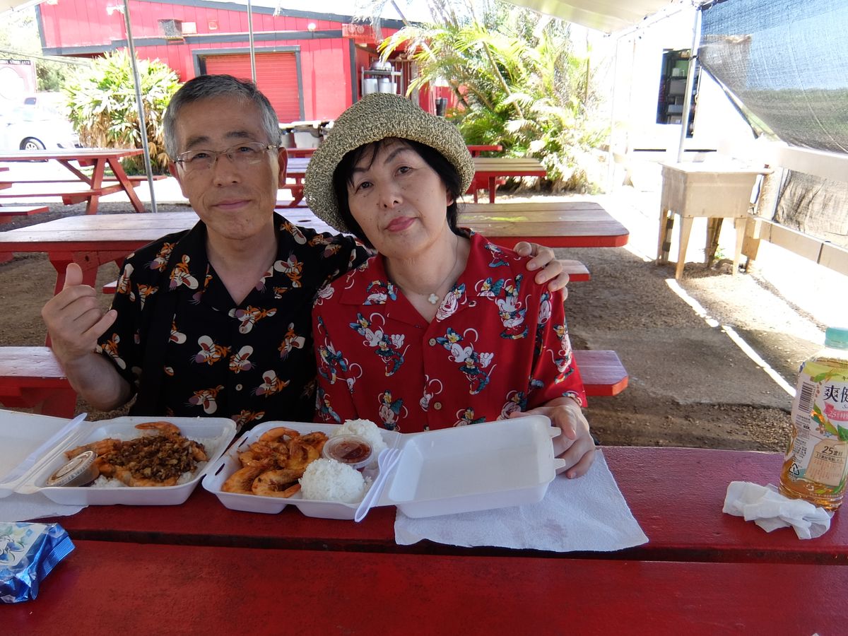 散策している間にガーリックシュリンプを注文しておいてくれたので行ってすぐ食べることができたのも助かりました。フリフリチキンは休業日だったため行けませんでしたが、母が見たがっていたカメハメハ大王像や宮殿も寄っていただき、さらには2歳の娘の為のストローラーを買うためウォルマートにも立ち寄ってもらって、無事GET(笑)
