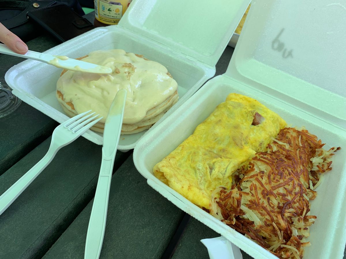 私の家族はあまり量が食べられないけど、味見はしたいと言うことで、紙のお皿や使い捨てのスプーンとフォークを持参していたので、とても便利でした。