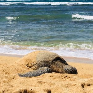 さらにノースショアの海辺で海ガメが観れるポイントにも案内してくれたのですが、残念ながらその日は海ガメには会えませんでした。するとホテルで飼っている海ガメを見せてくれました。TOMIOさんは私たちに野生の海ガメではなくすみませんと言っていましたが、彼の心遣いには感動しました。