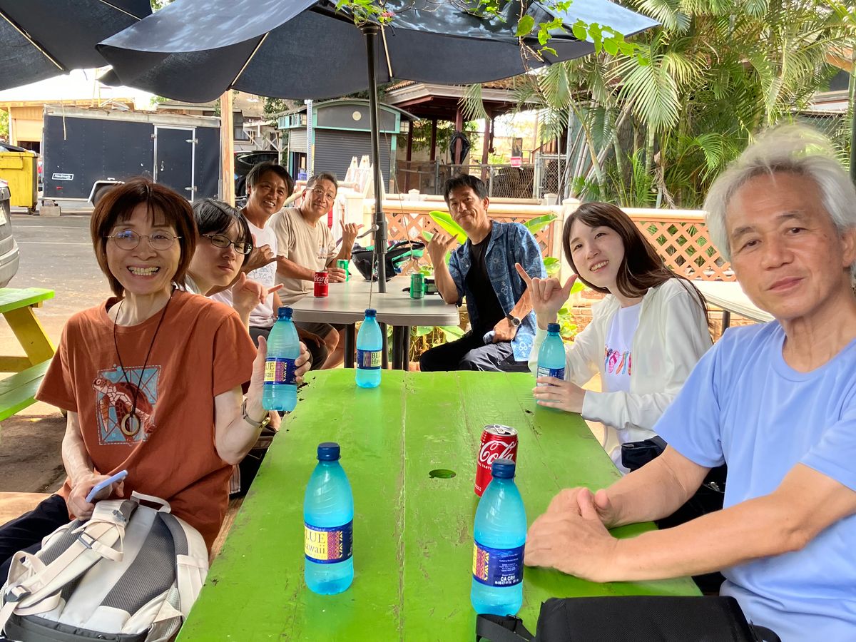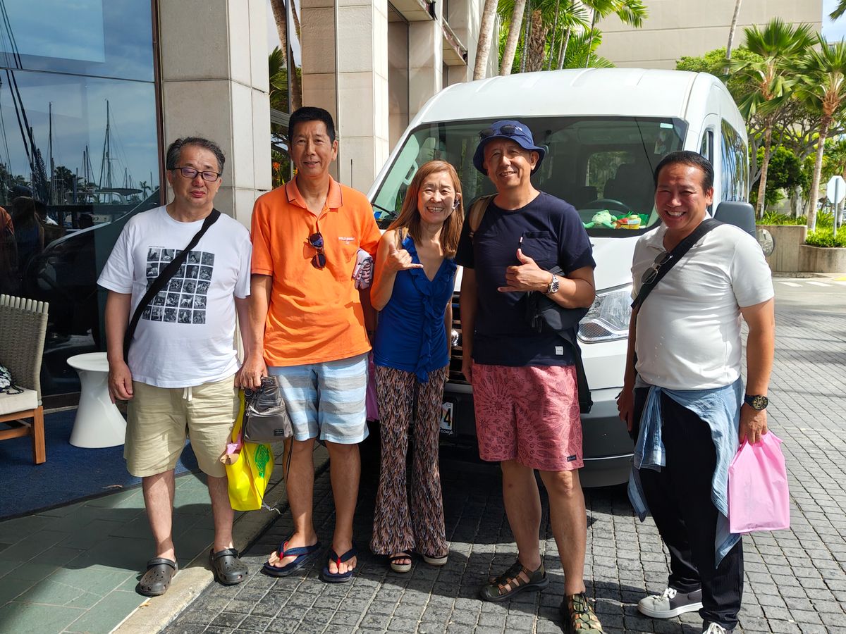 当日まで盛りだくさんの予定をしていましたが、ソノミさんのアドバイスで朝一にワイキキを出発、渋滞にも捕まらず時間を有効に使えました。ランチも希望の、シュリンプ、パンケーキとついでに、土曜日だったのでフリフリチキンも用意していただき、十分堪能できました。それでも時間いっぱいにワイキキのホテルに到着、バスの中で十分な現地で情報を得て、夕食は自分たちでも楽しめました。