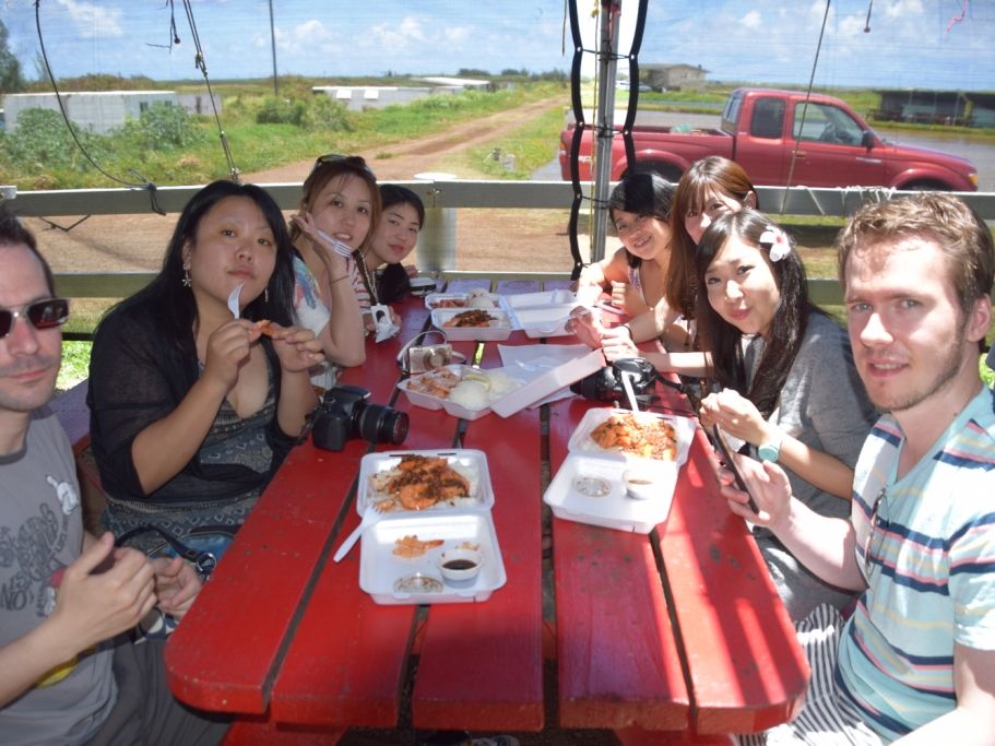 マイクは、まがままな私たちの要求を全部のんでくれてカメカメハ大王、モアルナガーデン、B級グルメのガーリックシュリンプ、ドールでのパイナップルアイス、松本のシェイブアイス、パワースポット等たった5時間のなかで楽しく美味しい思い出を作ってくれました。バンの中ではマイクの楽しいおしゃべりで全然退屈しませんでした。