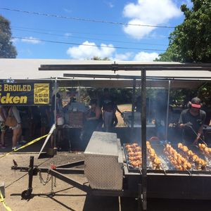 ランチにガーリックシュリンプをリクエストしたらヤスさんお薦めの食べ方を伝授してくれました。息子はエビがダメな事を伝えると、その日が土曜日だったことからフリフリチキンを薦められました。焼いている所も見れてラッキー。