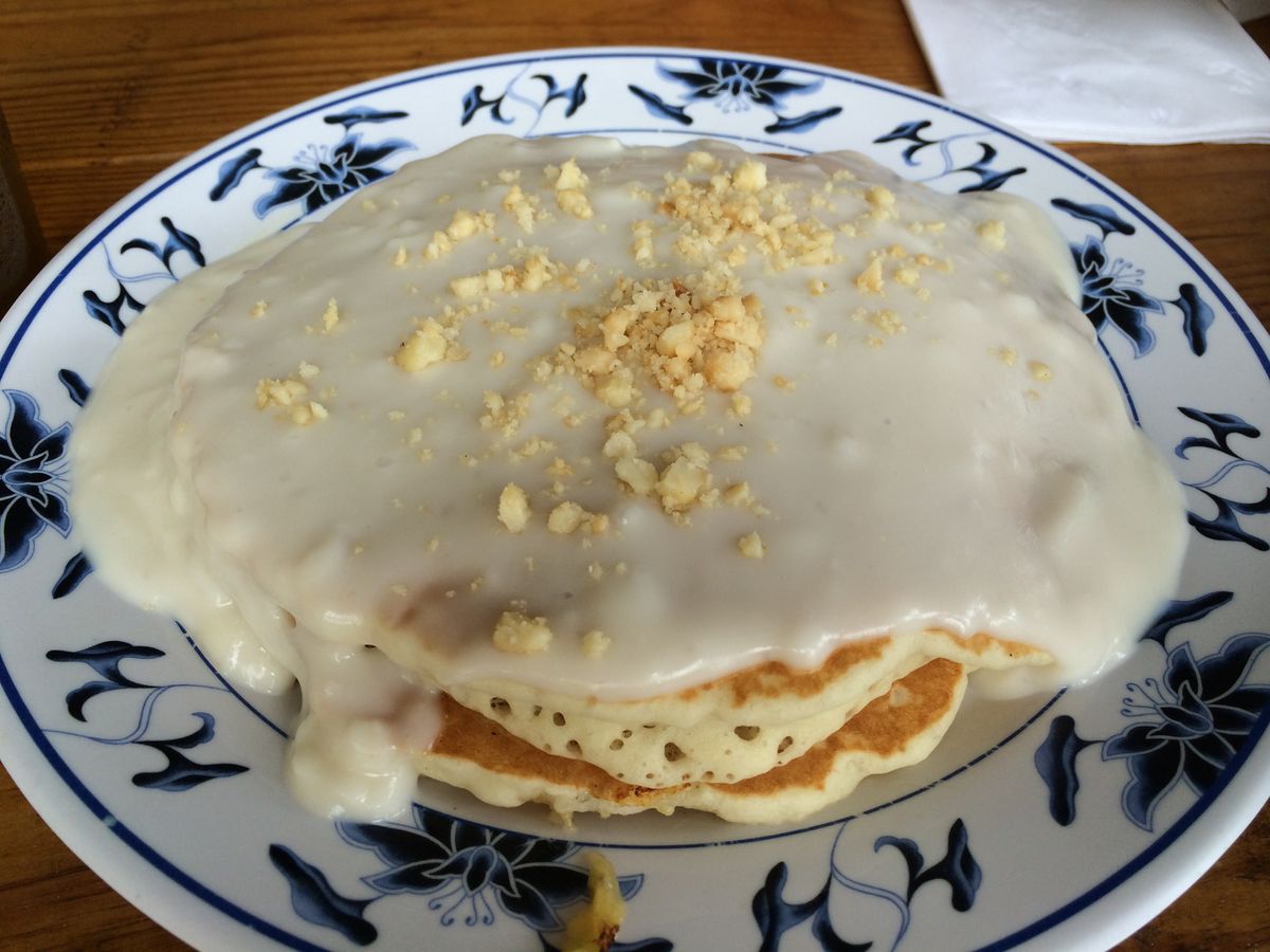 最初はSONOMIさんおすすめの梅シソスパムおにぎりをみんなで食べながらカイルアの街まで行き、カイルアに着いてからは、予約してくださってた人気パンケーキを並ばずに受け取ることができました!
