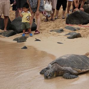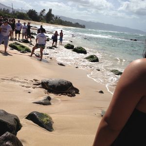 ラニアケアビーチは、ちょうどカメさんが海に戻るところに遭遇できて、1歳の息子も大喜びでした。