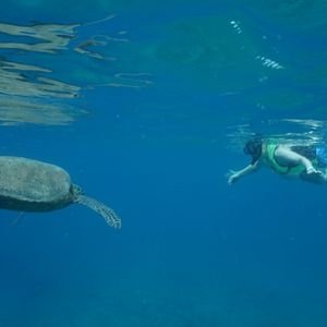 関わってくれたスタッフの方、一人ひとりが素敵な方達でした。シュノーケリングが初めてで、潜り方や呼吸の仕方のコツが掴めず、イルカの方はきちんと見ることができませんでした。でもウミガメの頃にはコツを得て、とても近くで泳ぐことができて感動しました。日本で買った酔い止めの薬を飲んだところ、酔わずに済みました。スナックやカルアポーク丼も美味しく、食わず嫌いの多い小学生の息子もよく食べていました。