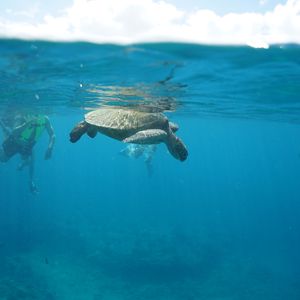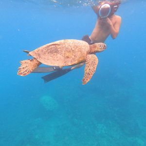 小さいカメから大きいカメにも3匹遭遇し、カメとぶつかりそうな距離で並走して泳げ、カメの息遣いを感じられたこともとても感動しました。