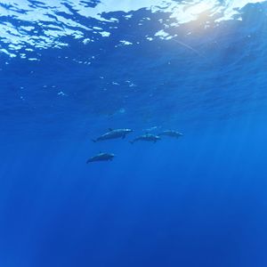 正面を泳ぎ過ぎるイルカや真っ青な海のなか陽の光を浴びながら真下に泳ぐイルカ、最後は親子イルカ3対にも遭遇し、母イルカが赤ちゃんイルカに泳ぎを教えているような場面を水中で見ながら泳げたことは感動でした。生後1ヶ月くらいの赤ちゃんイルカとのことで、母イルカの真似をするように泳ぐ姿がとても可愛かったです。