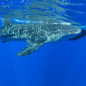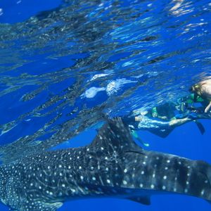 私たちは幸運にも野生のジンベイザメを見つけ(極めてレアだそうです)、一緒に泳ぎました!!