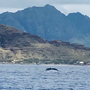 家族4人で参加しました。朝7時半ピックアップと早い時間でしたが、20人くらいの少人数のツアーとなり船内の移動がスムーズでした。海外の家族連れも参加されていてお人形の様に可愛いお子様に癒されました。出航してからすぐに海ガメと遭遇プカプカと浮いていました。30分後くらいにクジラの潮吹きを数カ所見ることができました。イルカは中々姿を見せてくれず不安になりましたが、1時間後にはこんなにいるの‼︎と言うくらいに遭遇することが出来感動しました。クルクルとジャンプしたり、胸びれで海面をたたいたりする行動も見れました。BBQのハンバーガーも美味しく満足のツアーとなりました。