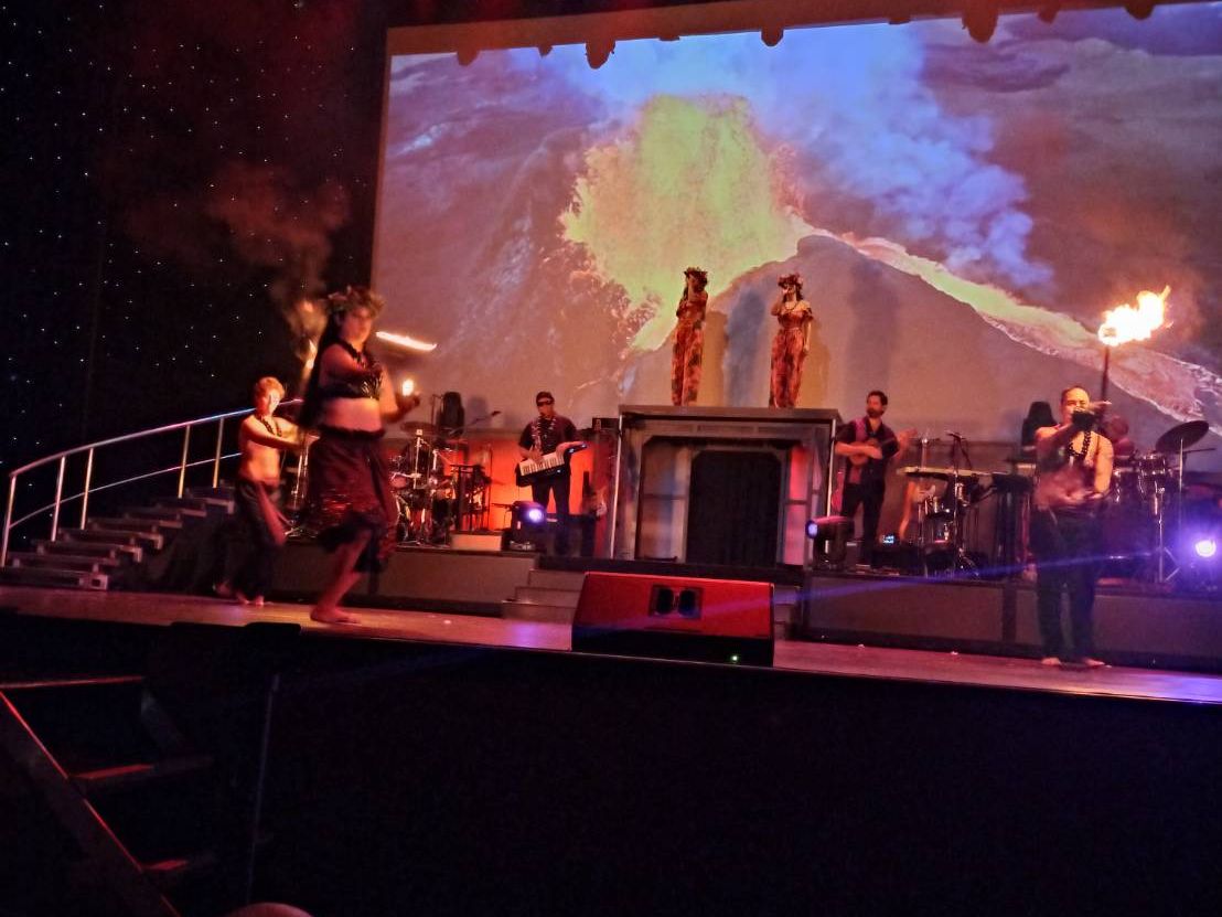 ステージではフラやタヒチアンダンスも見れたしエルビスプレスリーとマイケルジャクソンがすごーく似てたし曲やダンスも懐かしいし時差ぼけで眠かったにも関わらず最高のパフォーマンスを見せていただきました。