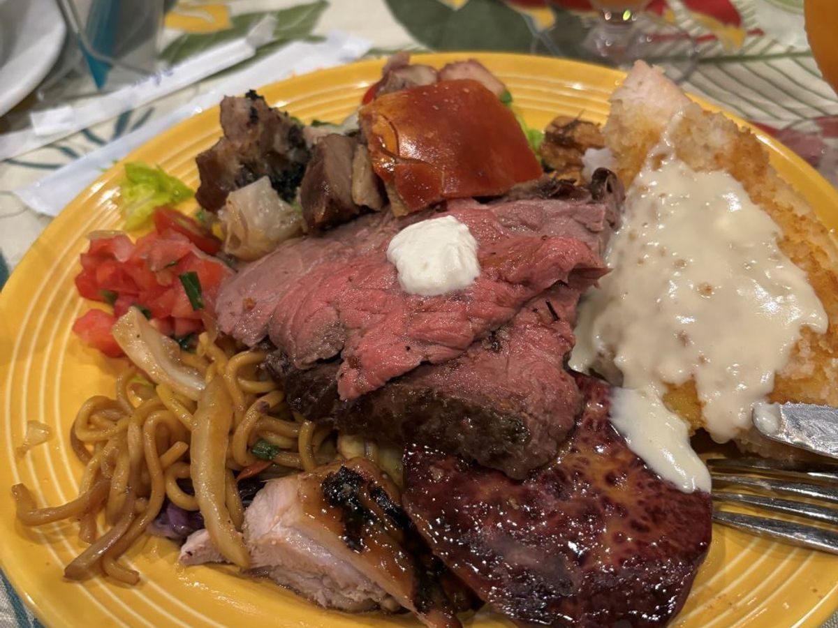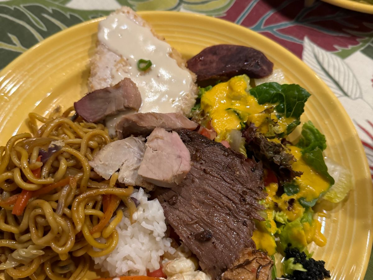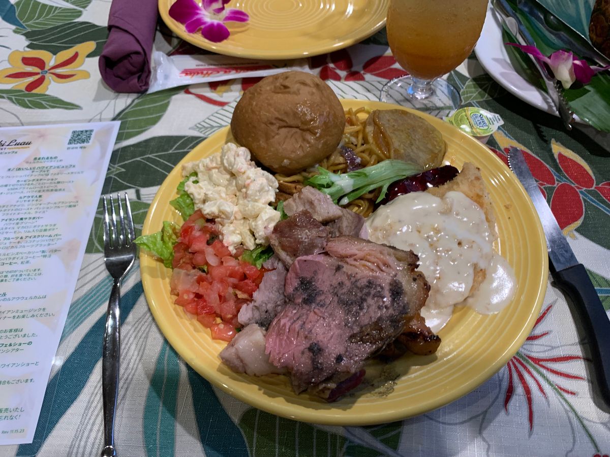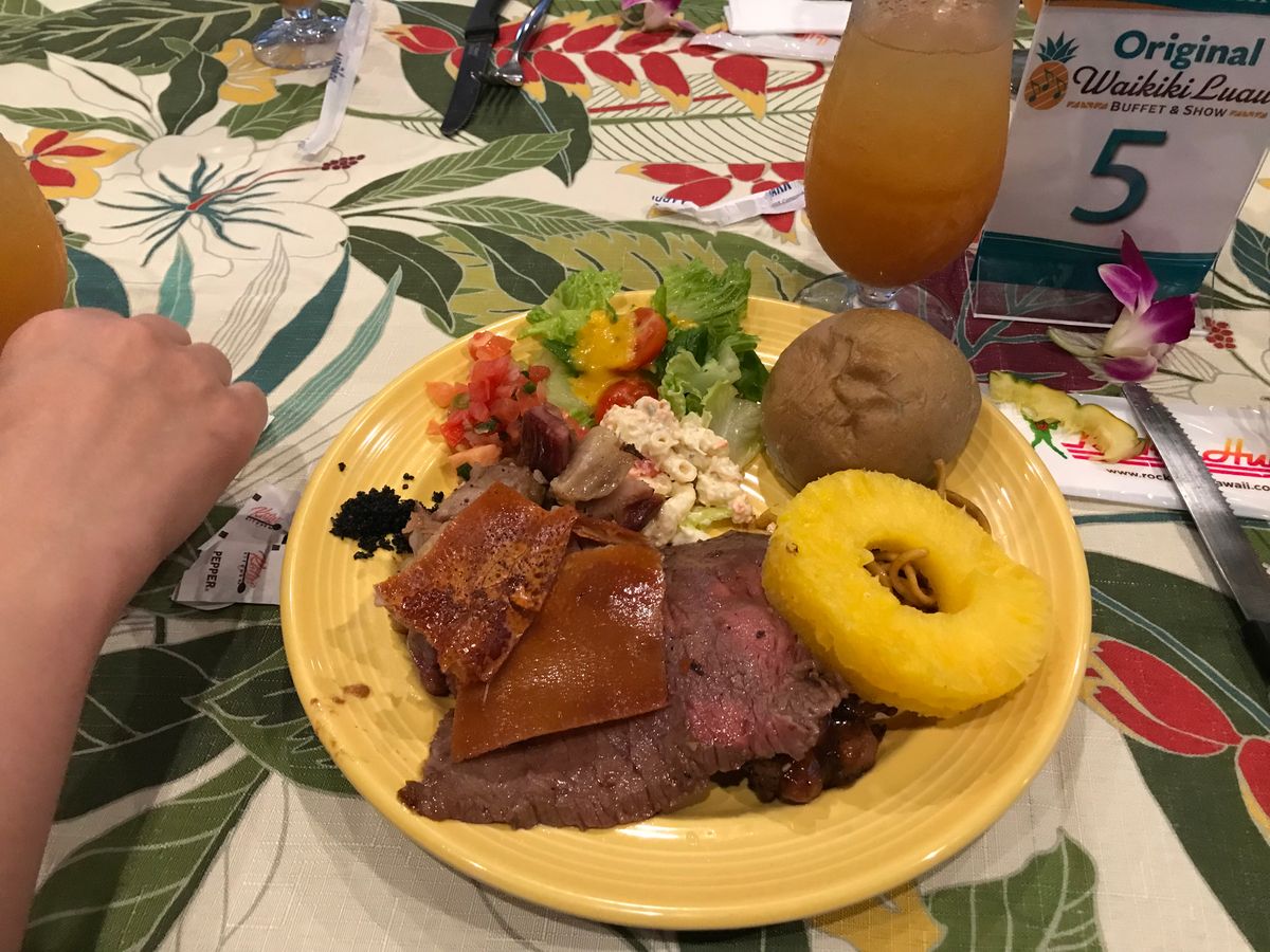 ご飯はビュッフェでハワイのいろんな料理が食べれてデザートまでありました。