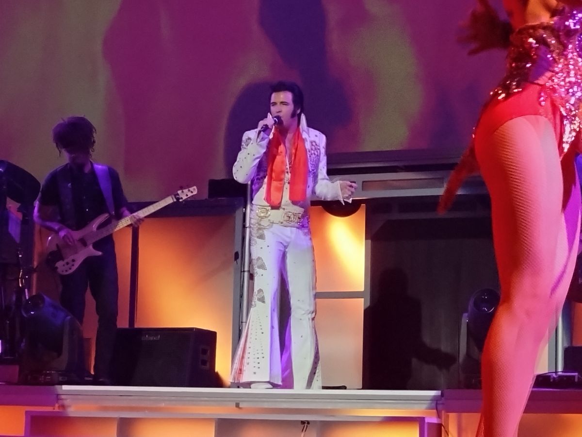 エルビスが目の前まできてくれ握手もできました。残念ながらスカーフは隣の席の方にプレゼントされましたが…