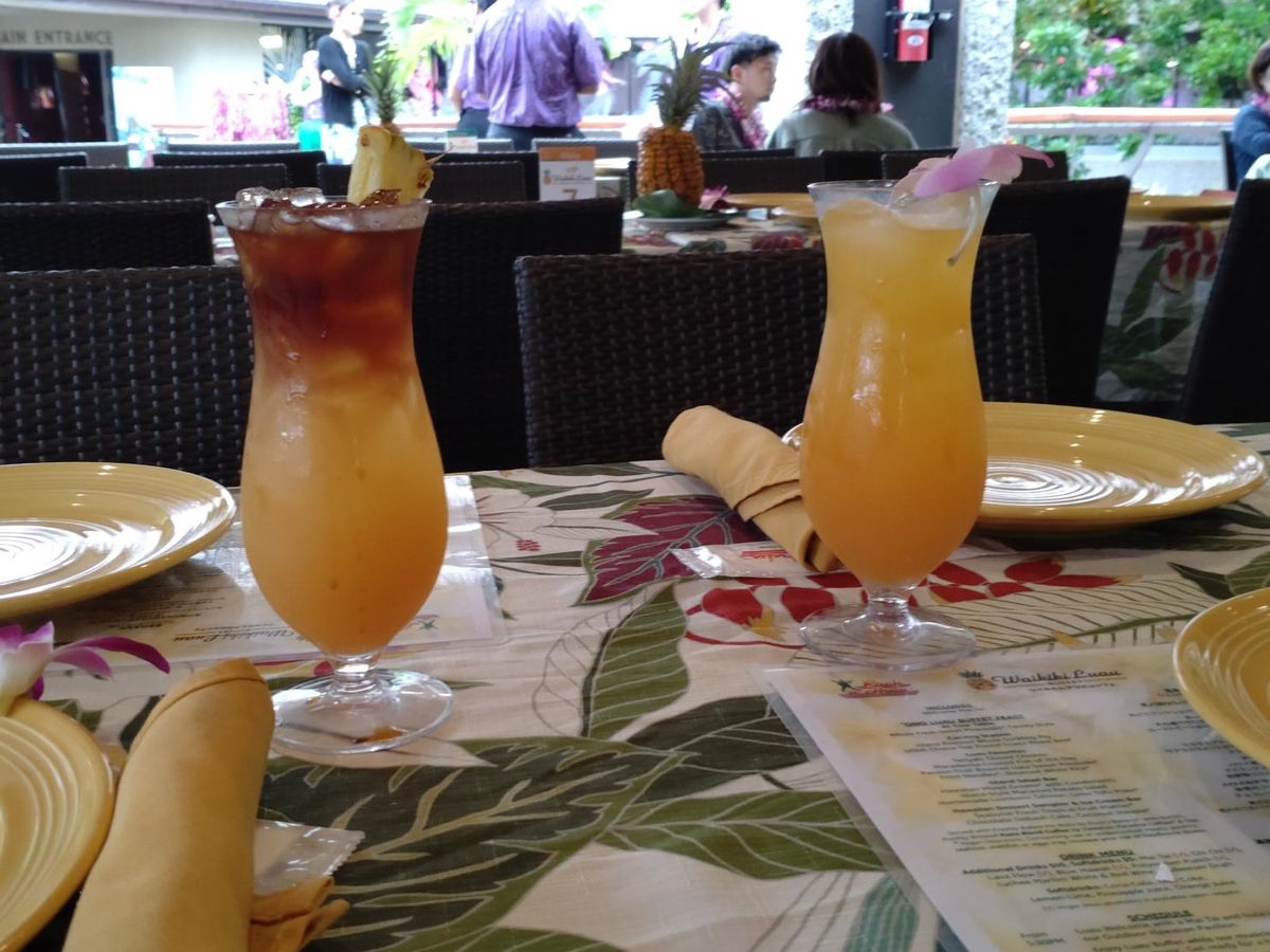 ウエルカムドリンク(マイタイカクテル)でお迎えしていただき、ウクレレですき焼きソングやbirthdayソングも席にて奏でて頂きました。ディナービュッフェはハワイ伝統料理など、お皿に盛り沢山、おかわり自由、とても美味しく