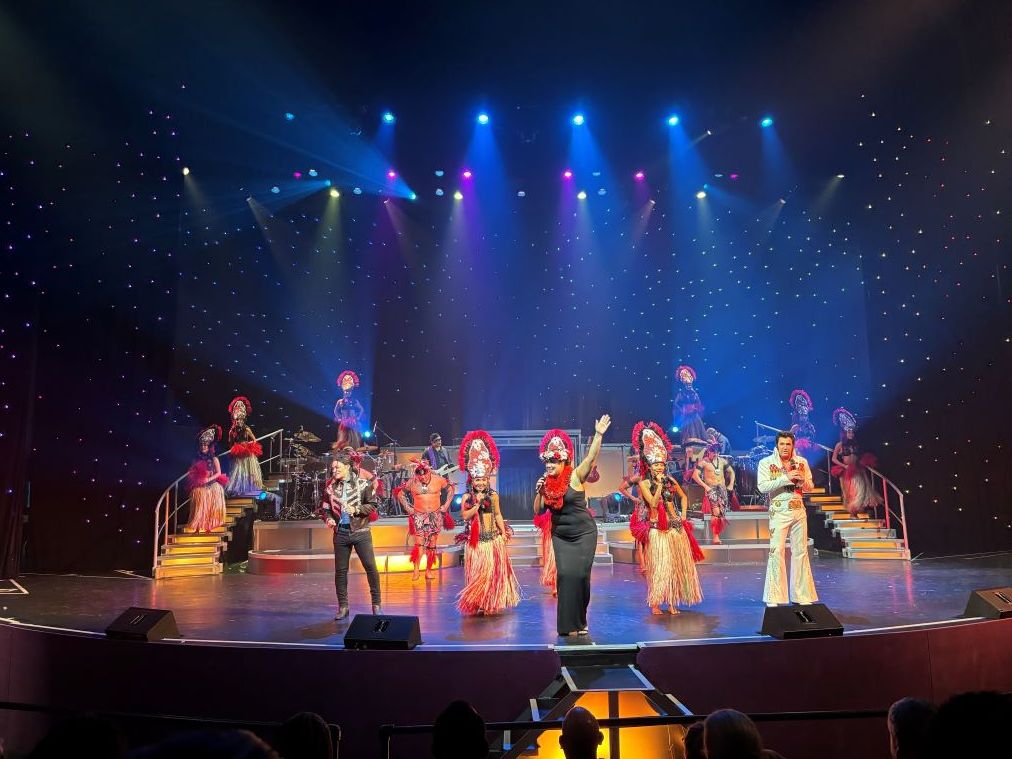 まず、日本語での案内等最初から最後まで一切ありません。食事は個別のテーブルではなく、10人以上の長テーブルで、夫婦で参加しましたが、予約席というか、順番に席をはじから案内され、向かい席でなく隣で並んで座りました。座ってすぐにドリンクが出ましたが、食事は決まった時間があるようでなかなか食べられなく、4人に1つパイナップルが置いてあるので一切れですがこれを食べながら時間をつぶしました、正直これは甘くもなく美味しいとは言えません。ビュッフェは順番に指示があってから取りに行きます。味については美味しいと思います。ローストビーフの生すぎるのには驚きました!デザートも美味しかったです。食事中のショーも近かったせいもあるが良かったです!食後にシアターに移動ですが、これがいつ移動したらいいのか、どの席なのかわからなかったです。人の流れを見て自分の判断でシアターに入ると、中に人がいて、ここでも順番に席を案内されました。早めに入ったせいかなかなかいい席でした!何かステッカーをもらうとか案内をもらうとか何もありません。ショーはエルビスを知らない我々でも大変楽しかったです。終了後、キャスターとの写真撮影が可能で、遠慮せずドンドン撮って楽しく帰りました。