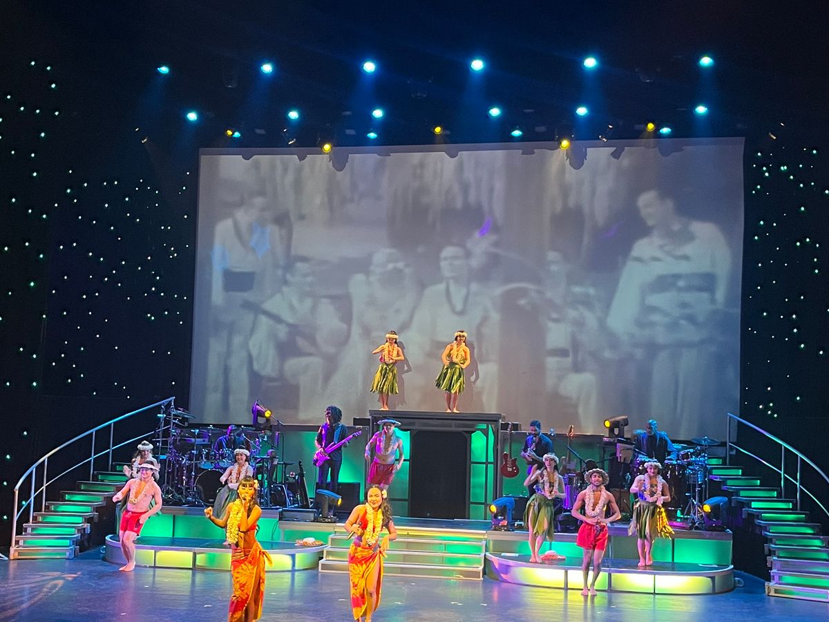 フラダンスとロックの組み合わせはどんなだろう?と思っていましたが、両者の良さが見事にマッチした素晴らしいショーになっており、とても楽しい時間を過ごすことができました。特に、歴史を辿るような演出は懐かしさも感じられ、人を惹きつける素晴らしい構成になっているなと思いました。