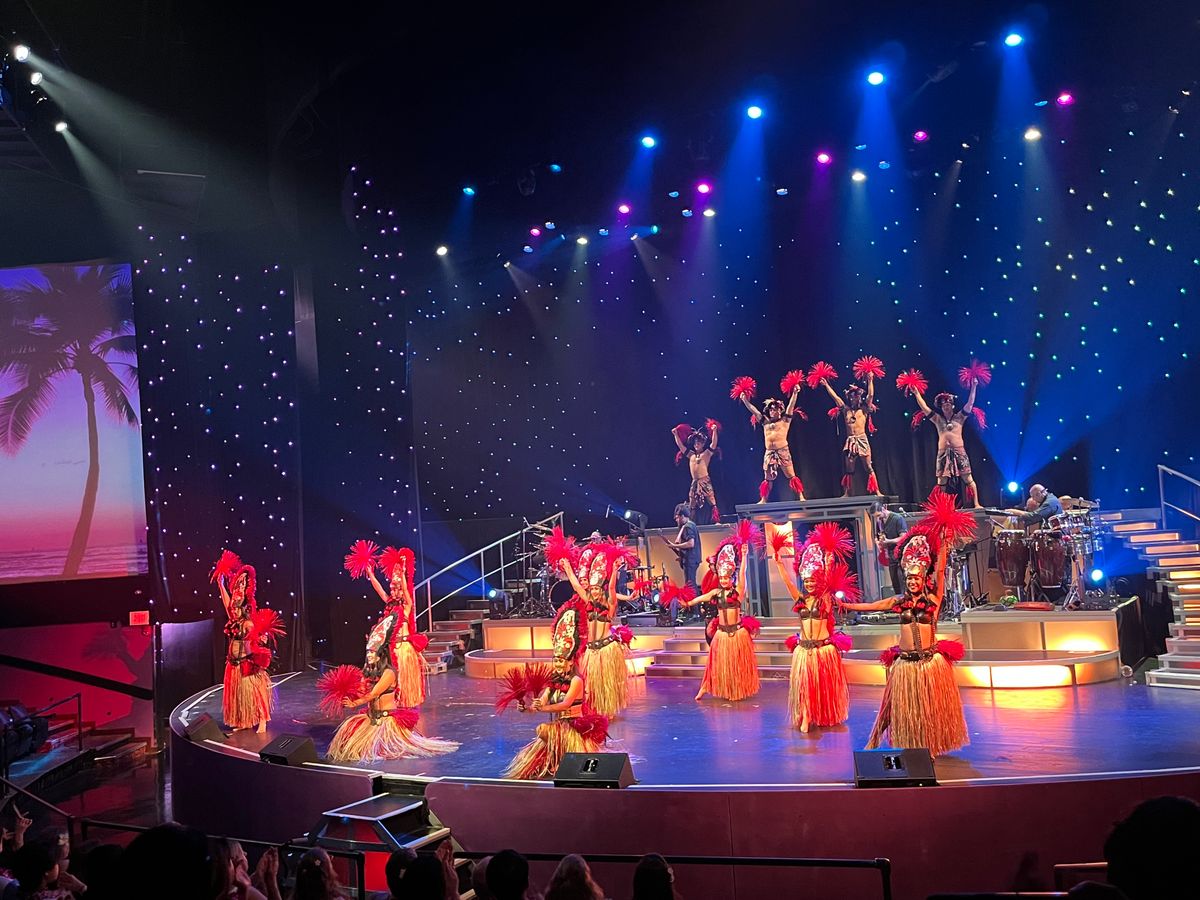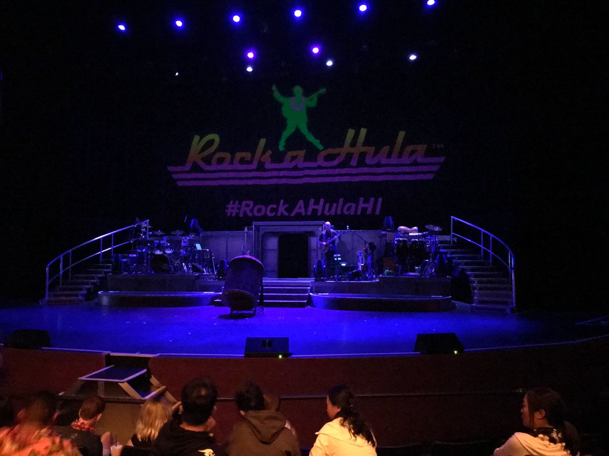 つづいてロックアフラのショーを見る為にシアターに移動、こちらも舞台と席がとても近く、生バンドによる演奏、光や映像の演出が相まってフラダンスやエルビス、マイケルジャクソンのパフォーマンス、またハワイの歌手の方の歌が迫力満点です‼︎