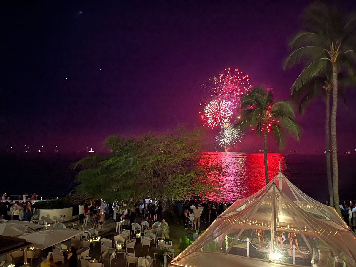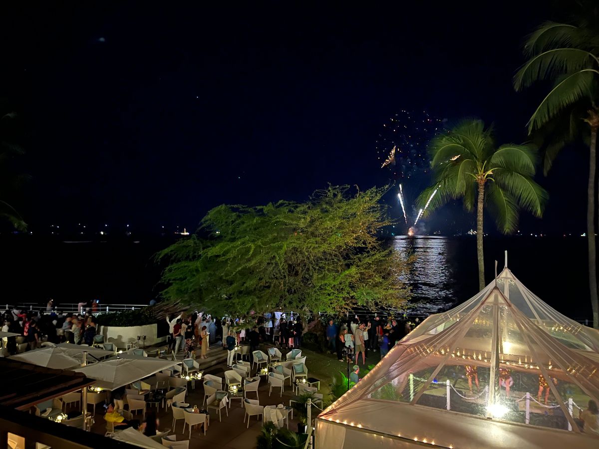 カウントダウンではハワイの海を臨むテラスに移動して綺麗な花火を鑑賞しました。