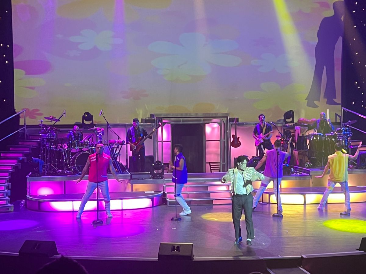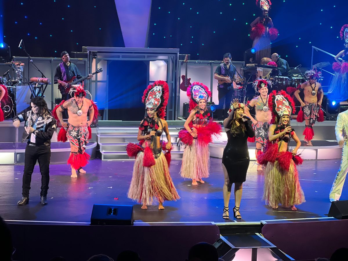 ロックンロールやハワイアンミュージック、フラダンスなど、様々なジャンルが織り交ぜられたエンターテインメントでした!特に印象に残ったのは、私もよく知っているマイケル・ジャクソンのショーでした。生演奏のバンドと共にマイケルの名曲が演奏され、その後にはマイケル本人のダンス映像とのコラボレーションもあり、会場全員ノリノリになっていました。