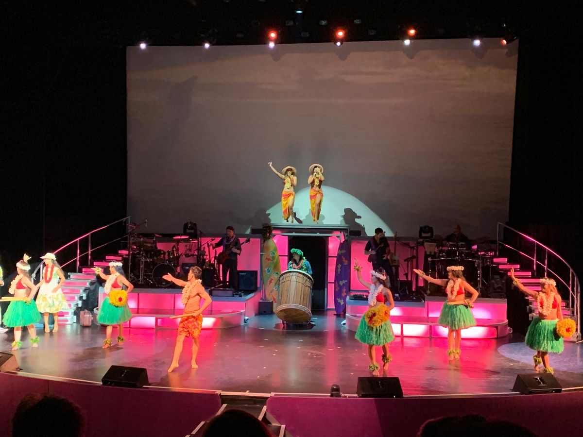 ロイヤルショッピングセンターには毎回行ってましたがホールがある事に気付きませんでしした、ショーの内容はハワイの歴史と音楽を融合された演出でものまねとフラダンス、ファイヤーダンスとただ順番で出てくるのではない組み立ては時代背景もわかりとても良かったです