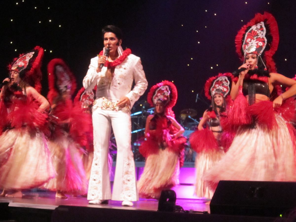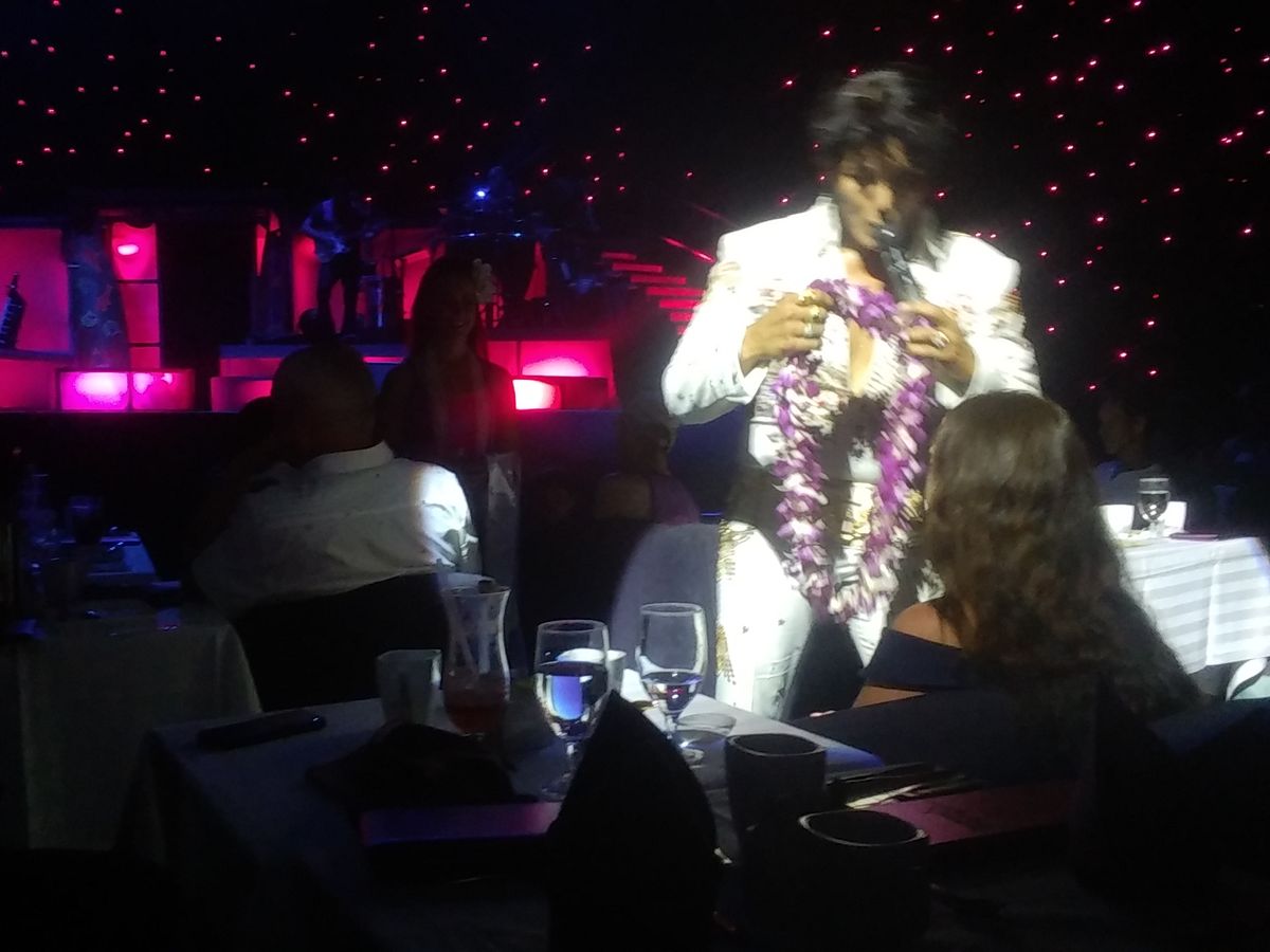 when we arrived there was a traditional Hawaiian dance to greet us. we then went into the venue for appetizers, which were well presented and very tasty. when we went into the main stage area we could not believe the position of our seat. right in front of the stage. the meal was exquisite and all 4 courses were cooked to perfection. when the show started the production was amazing. it was choreographed like a Broadway show. the Elvis impersonator sounded great and really looked the part. When he went through the crowd during "Suspicious Minds" he kept laughing between lyrics, just like Elvis did in his live performances. a simple touch but excellent attention to detail. We also had a Michael Jackson performer who was also very good and entertaining. His 'Moon Walk' routine was spot on.