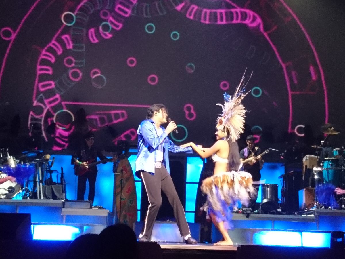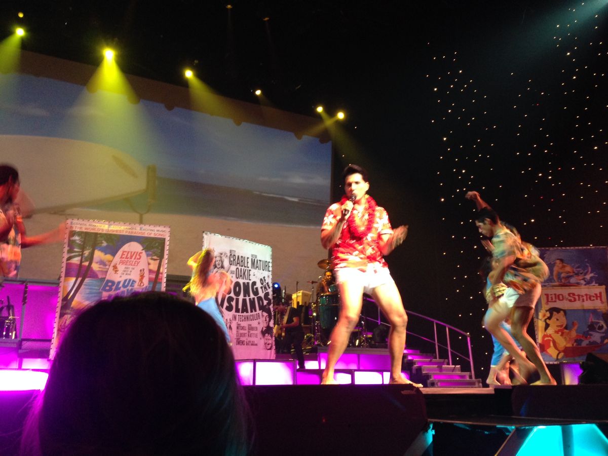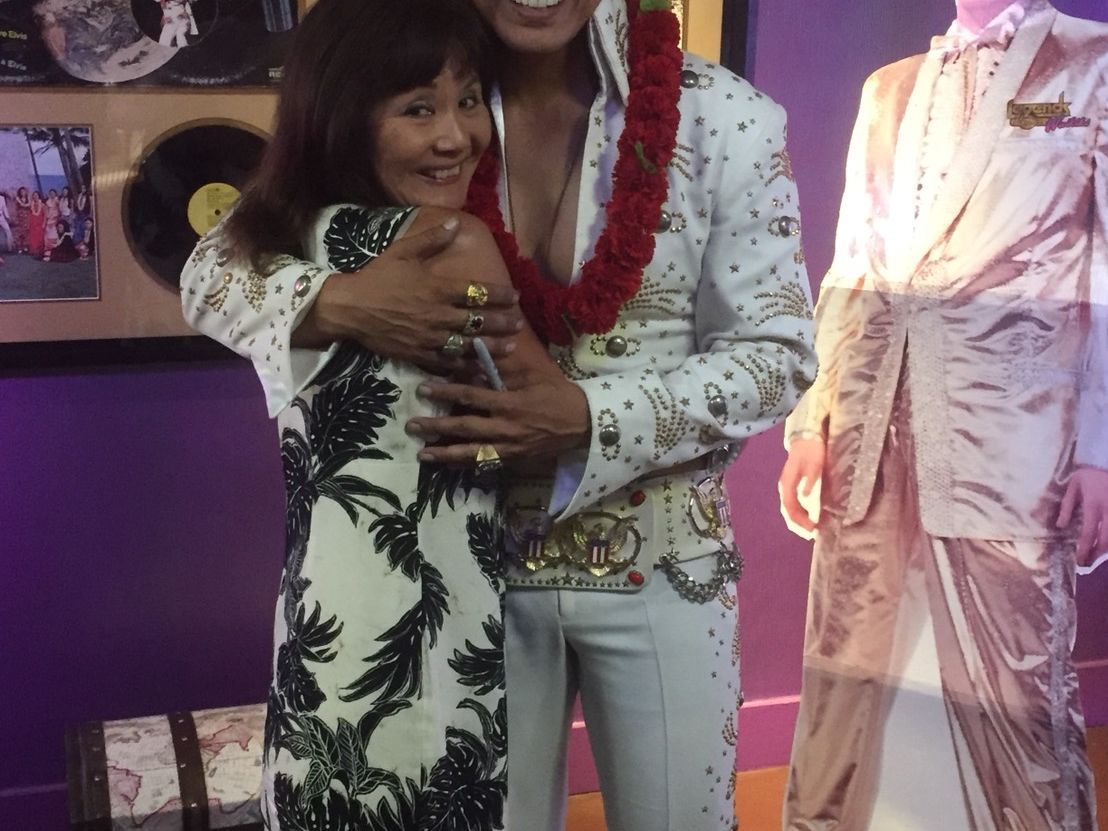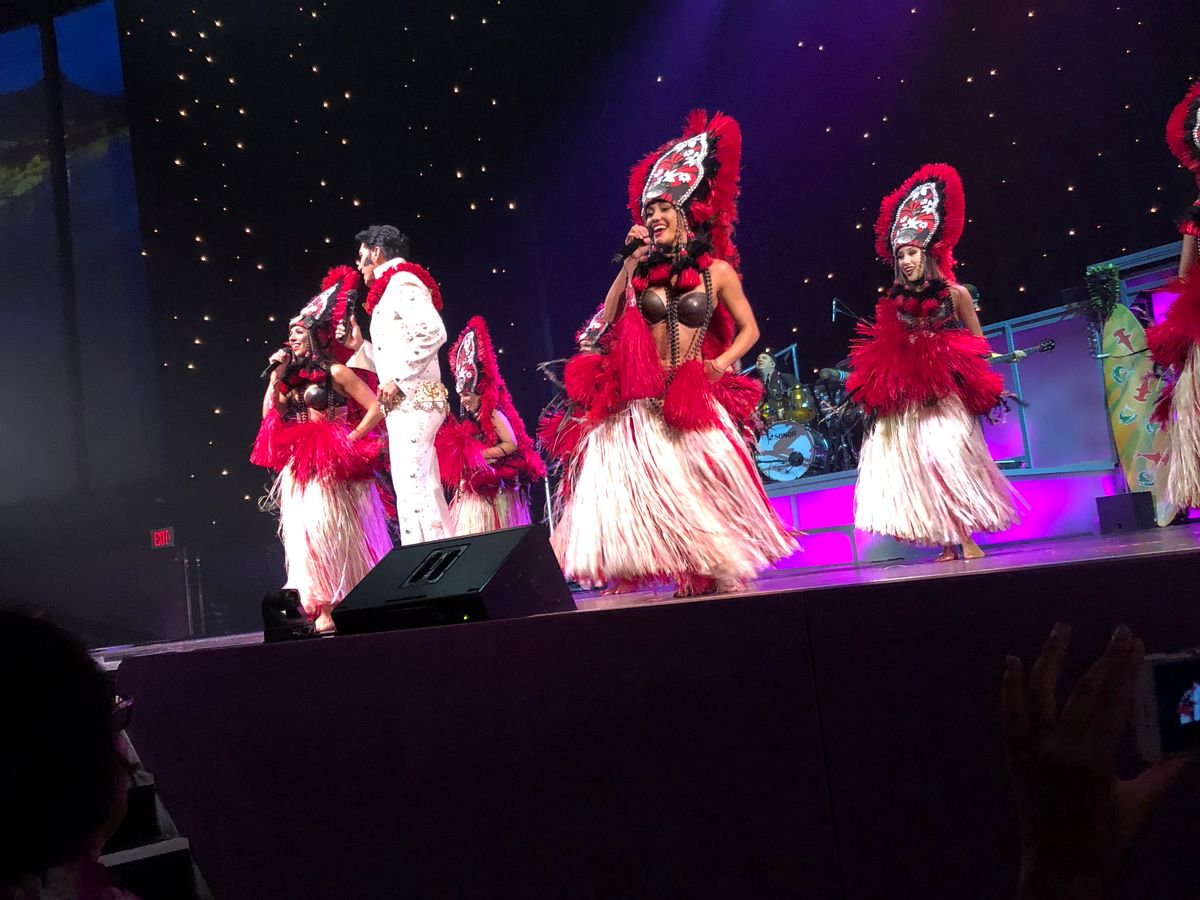 ショーはハワイの歴史から始まり、題名の通りフラとロックの融合?プレスリーは本物のショーのように、そっくりさんが会場を回り握手をしたり、マフラーをプレゼントしたりと会場は大盛り上がりでした。