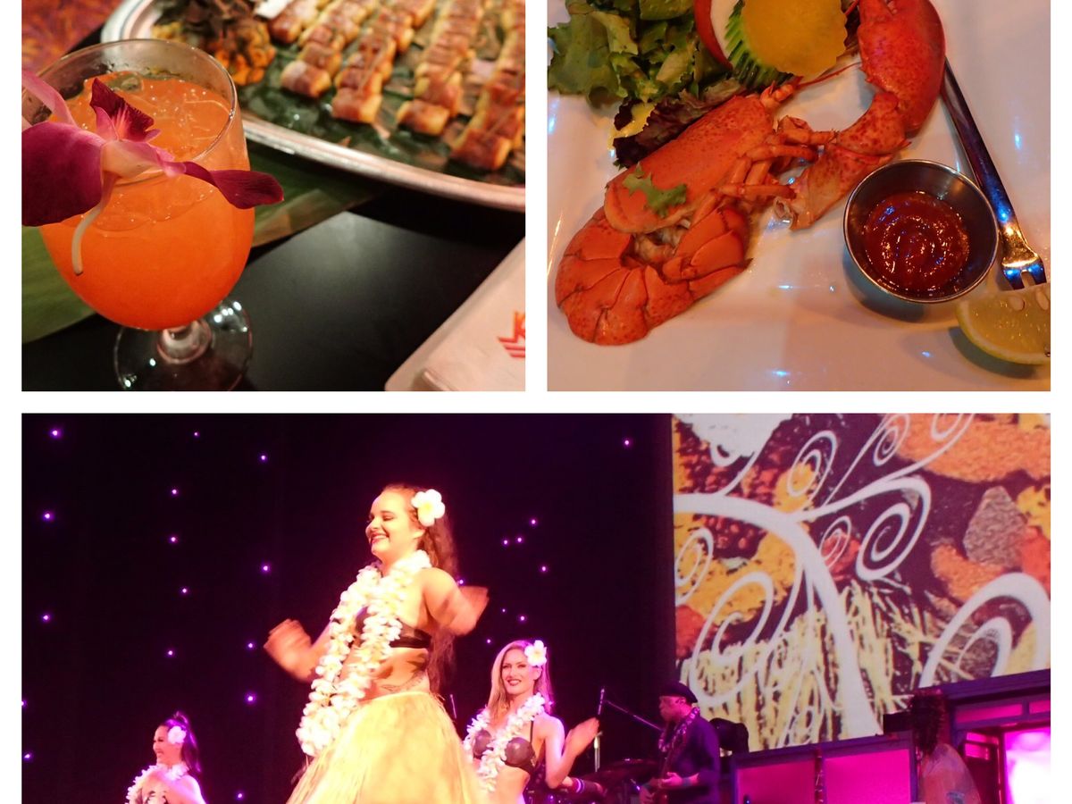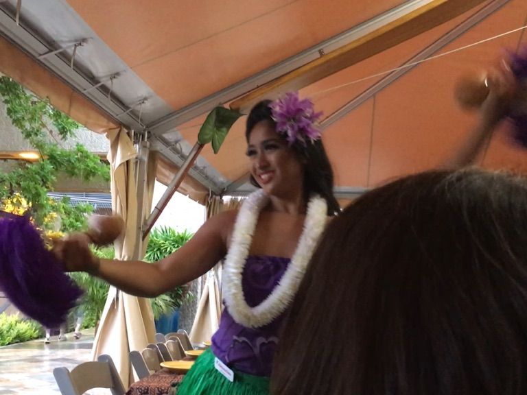 入り口ではフラダンスのお出迎えがあり、ウェルカムドリンクのマイタイ(アルコールかノンアルコールか選べました)を飲みながら入場しました。
