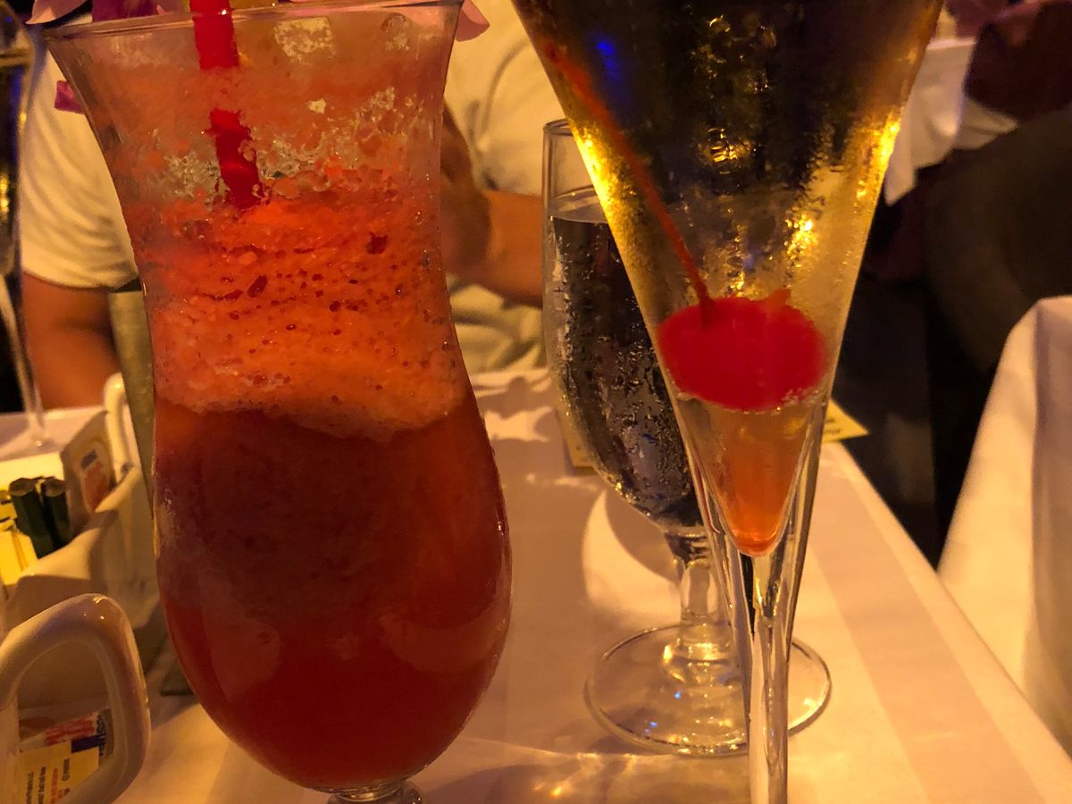 私たちはブュッフェだったので、席に通されるとパイナップルをお皿に取り分けてくれて、マイタイのアルコール入りかノンアルコールか選べました